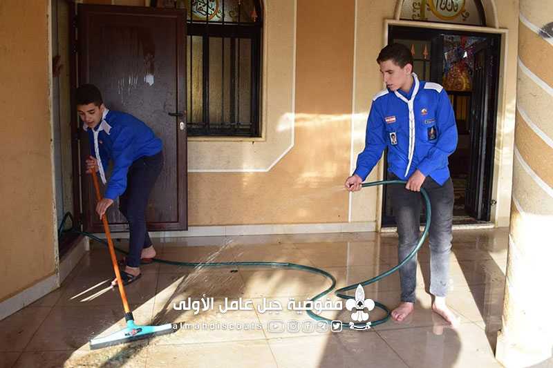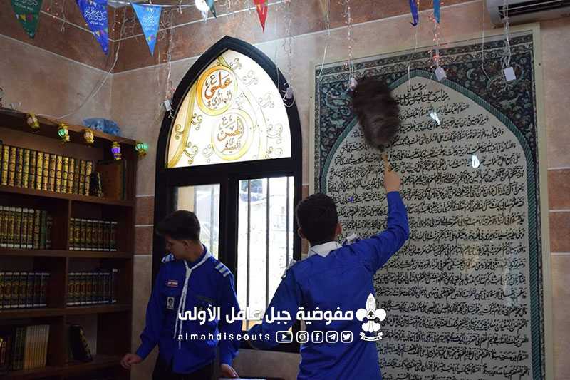 في أجواء شهر رمضان المبارك اقام رهط الولاء في عشيرة الجوالة فوج الإمام الحسن العسكري (عليه السلام)/ طيردبا في قطاع القاسمية، حملة تنظيف وترتيب للمسجد. .