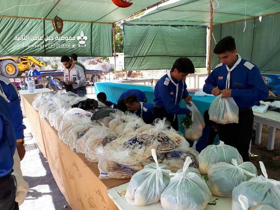 مشاركة عشيرة الجوالة في فوج الإمام المهدي (عج)/السكسكية بنشاط إجتماعي في شهر الخير، تخلله توضيب وتوزيع حصص غذائية على أهالي البلدة.