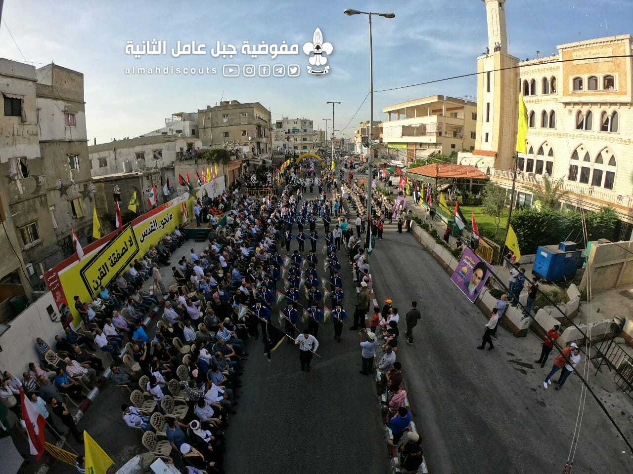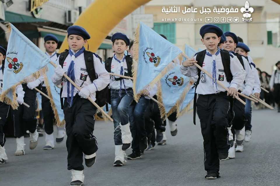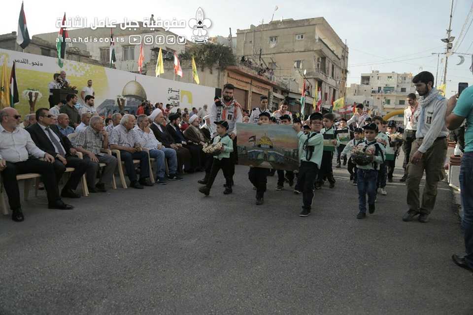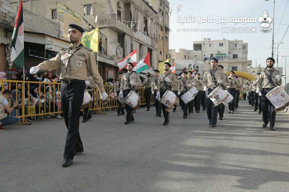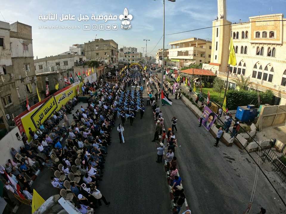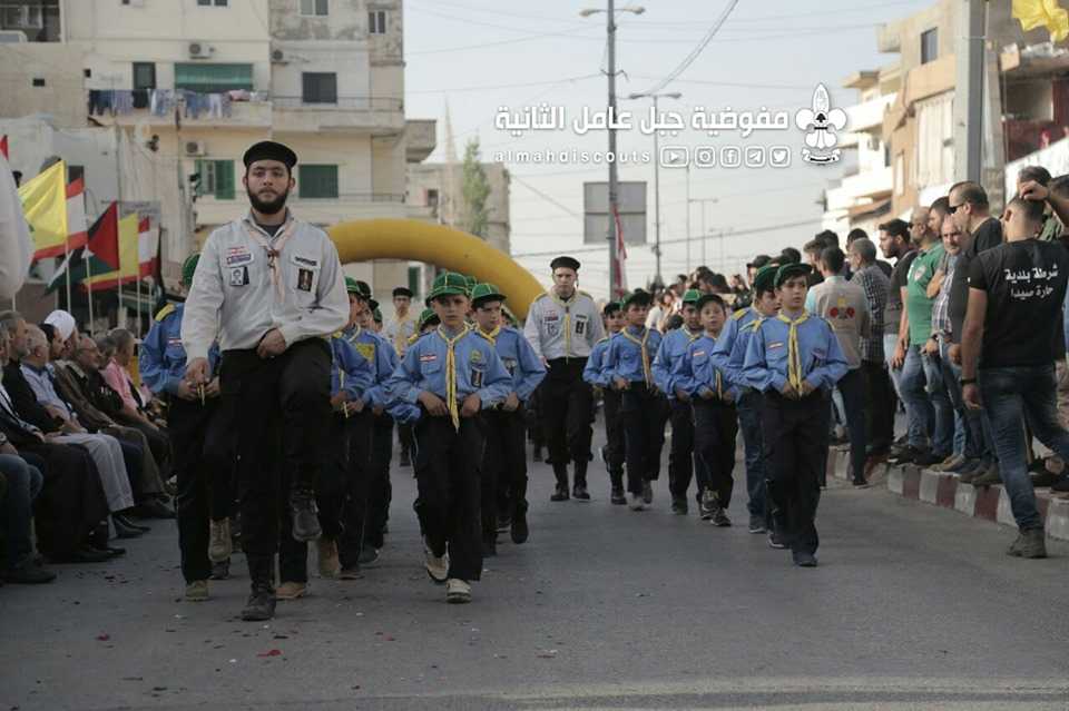 وبألوانها الكشفية وعلى وقع معزوفات فرقة جبل عامل الموسيقية، سارت السرايا الكشفية التي حملت أسماء شهداء فلسطين ولبنان.