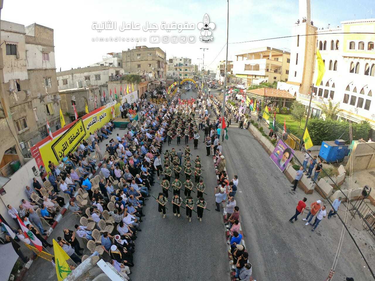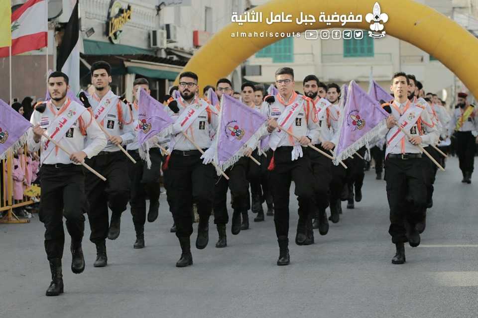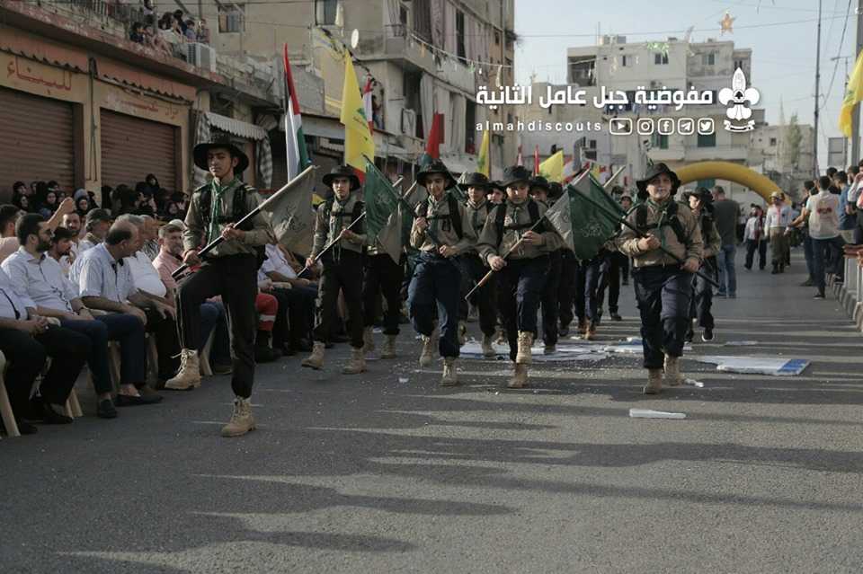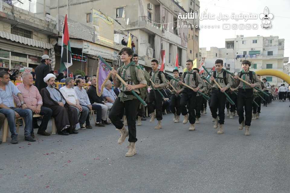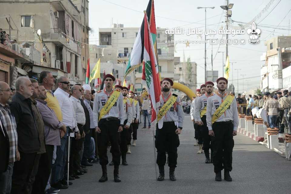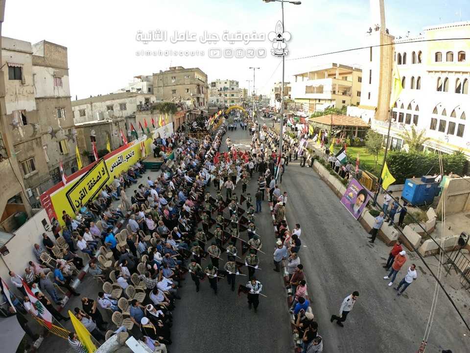 وبألوانها الكشفية وعلى وقع معزوفات فرقة جبل عامل الموسيقية، سارت السرايا الكشفية التي حملت أسماء شهداء فلسطين ولبنان.