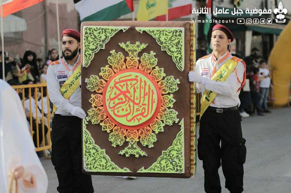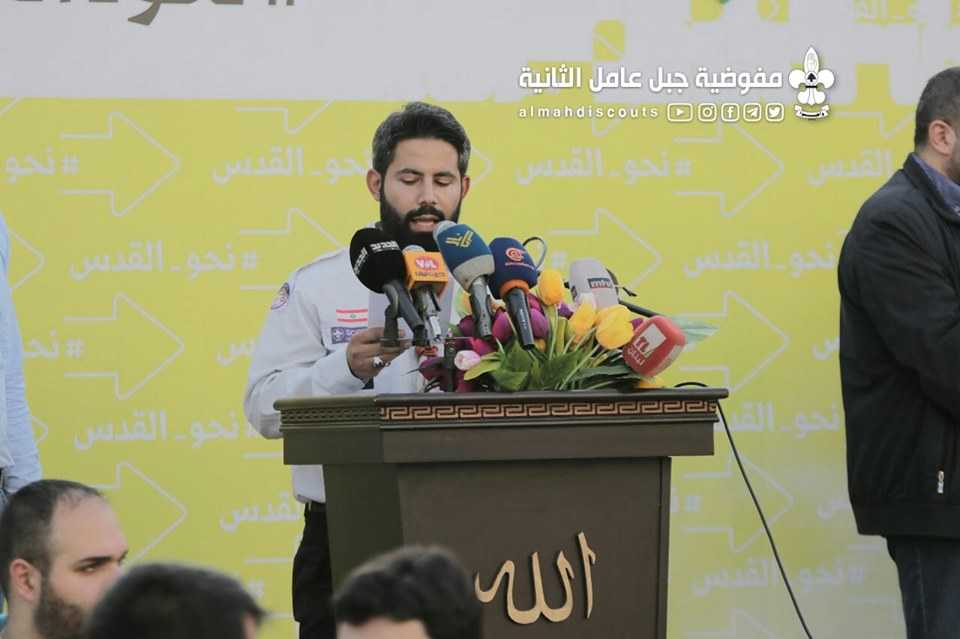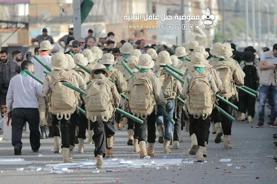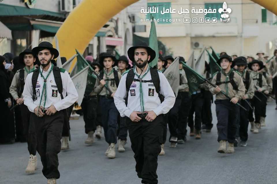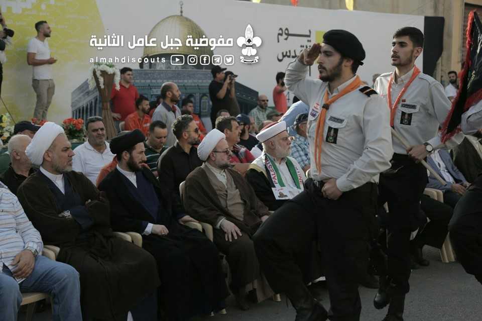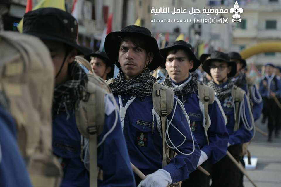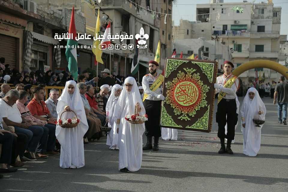 وبألوانها الكشفية وعلى وقع معزوفات فرقة جبل عامل الموسيقية، سارت السرايا الكشفية التي حملت أسماء شهداء فلسطين ولبنان.