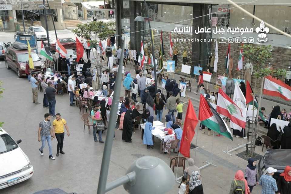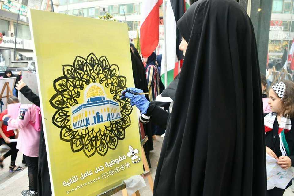 بالرّيشة الثورية واللّون النابض بالحب، أرسل الكشفيون والعديد من الفنانون تحياهم لزهرة المدائن وتضامنهم مع القدس في يومها، وذلك خلال المرسم الفنّي "نحو القدس" الذي دعا إليه قطاع الإمام العسكري(ع)/صيدا مفوضية جبل عامل الثانية، في أجواء يوم القدس العالمي، والذي أقيم في السوق التجاري لمدينة صيدا.