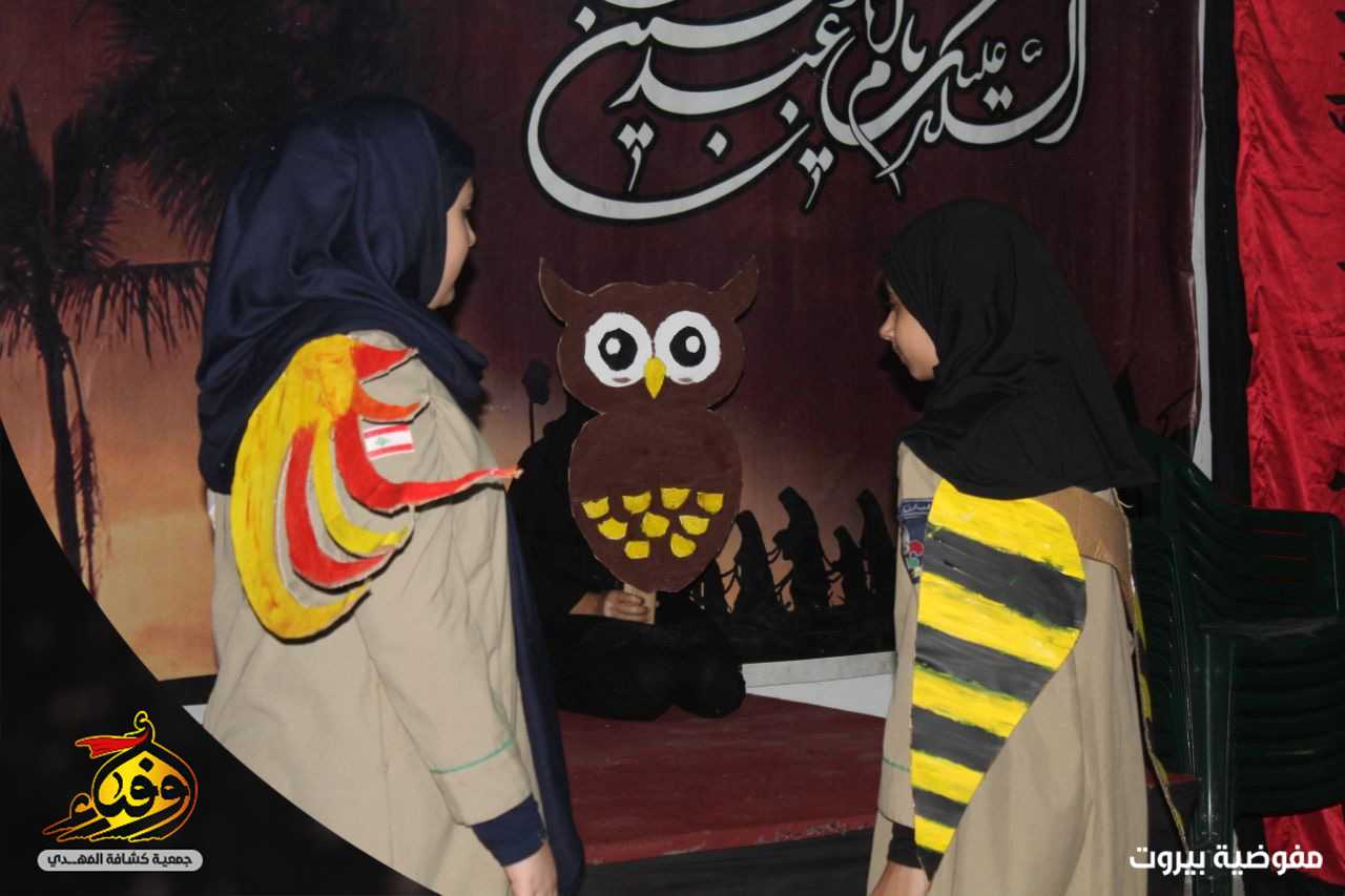9343 كشفي وكشفية احيوا اليوم الرابع من محرّم في بيروت من مختلف الافواج الكشفية حيث تضمنت الاحياءات فقرات فنّية مختلفة تحاكي واقعة عاشوراء لتترك اثرا حسينياً في نفوس الناشئة