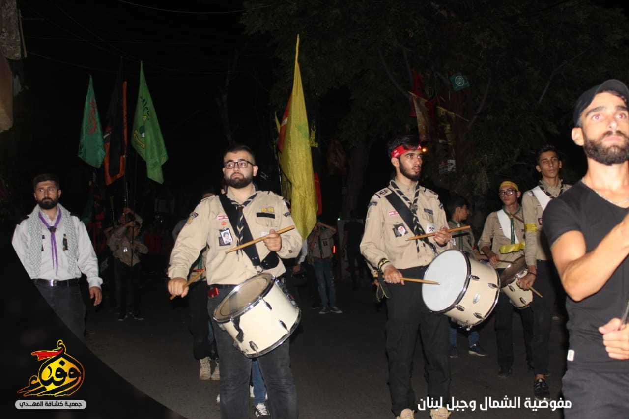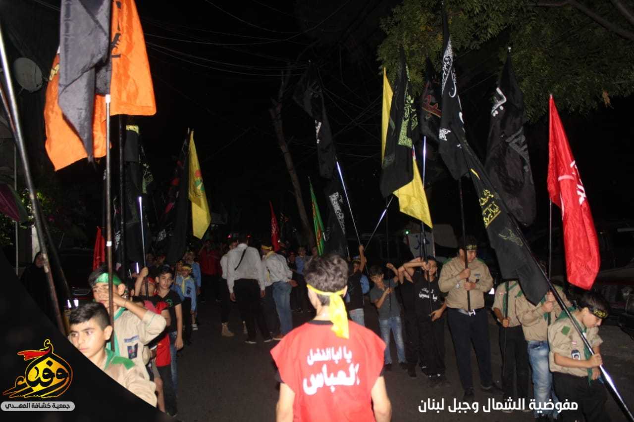 صدحت حناجر الملبين لنصرة أبي الفضل العباس وعلت قبضاتهم وارتفعت رايات الامام الحسين عليه السلام ضمن المسيرة التي نظمت في منطقة رويسات قطاع المتن الشمالي والتي تقدمتها الفرقة الموسيقية وحملة صور القادة والشهداء.
