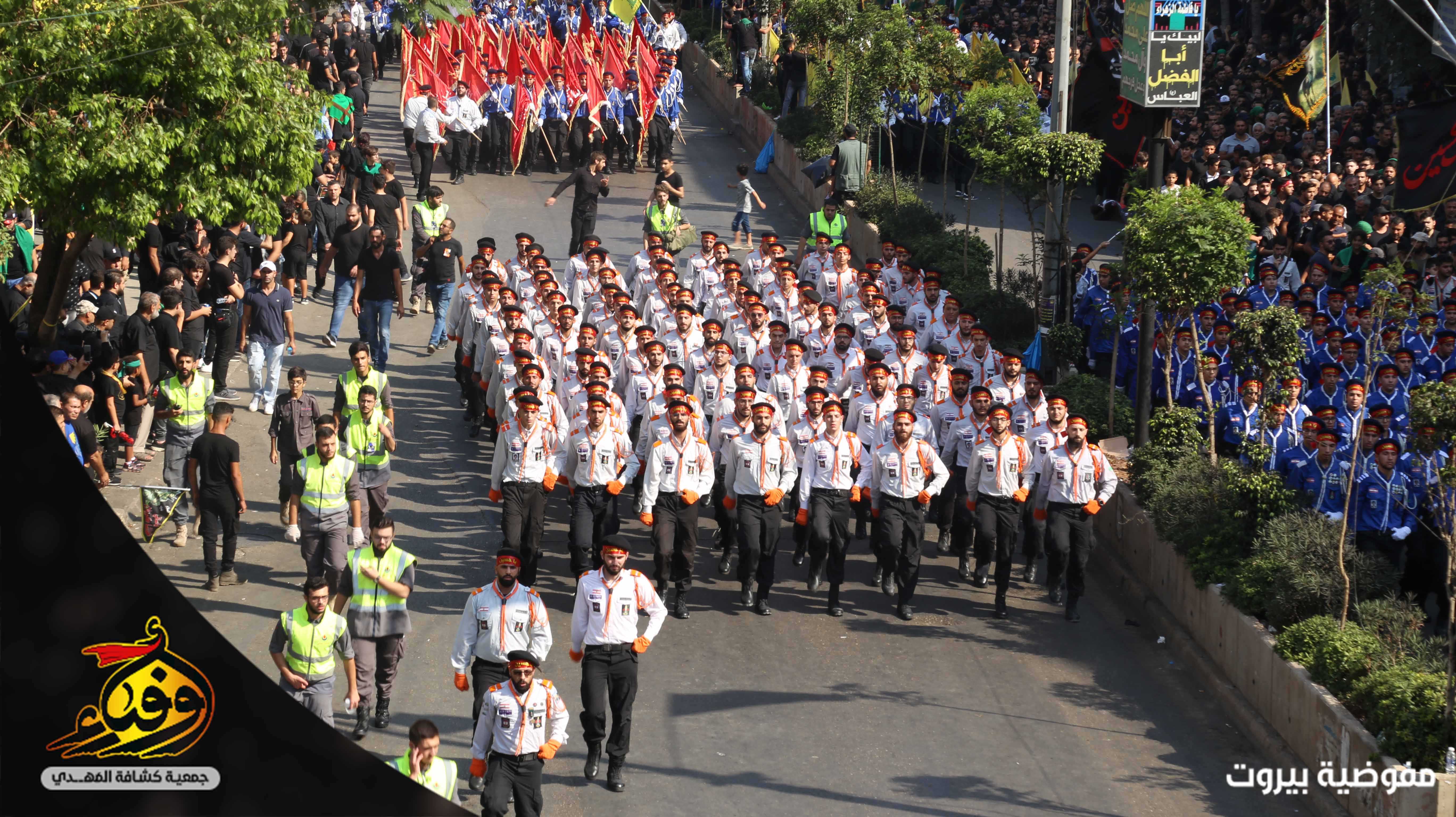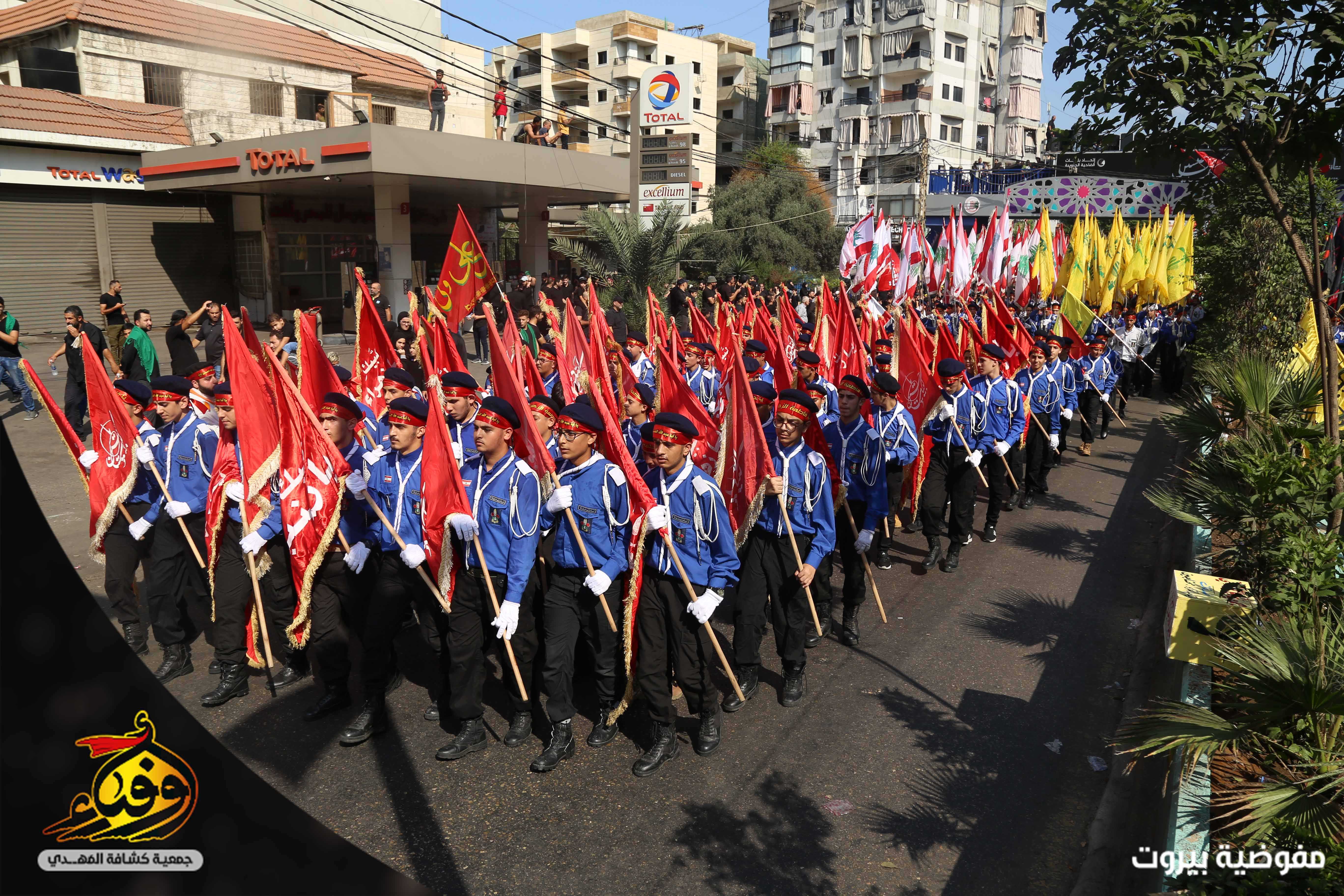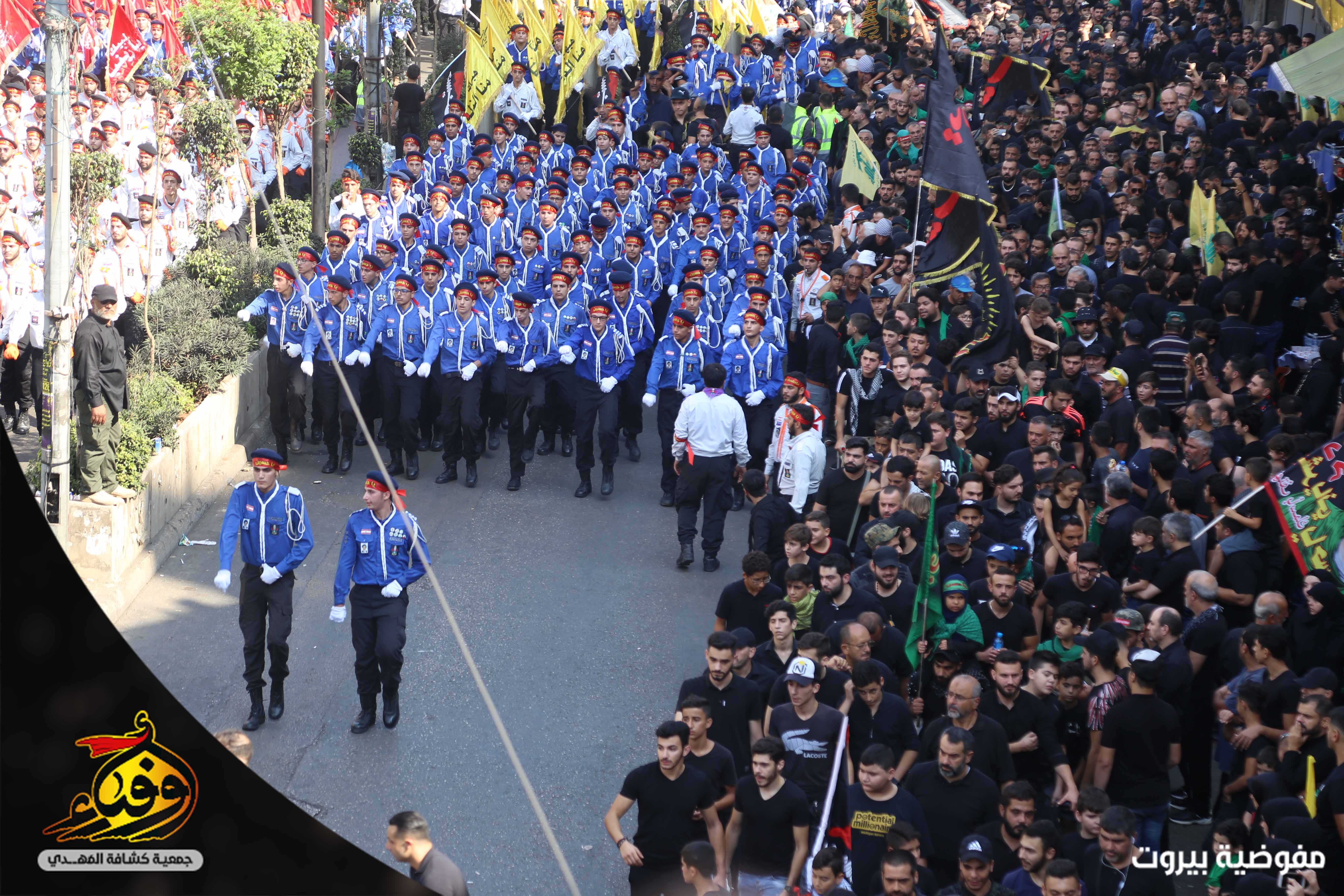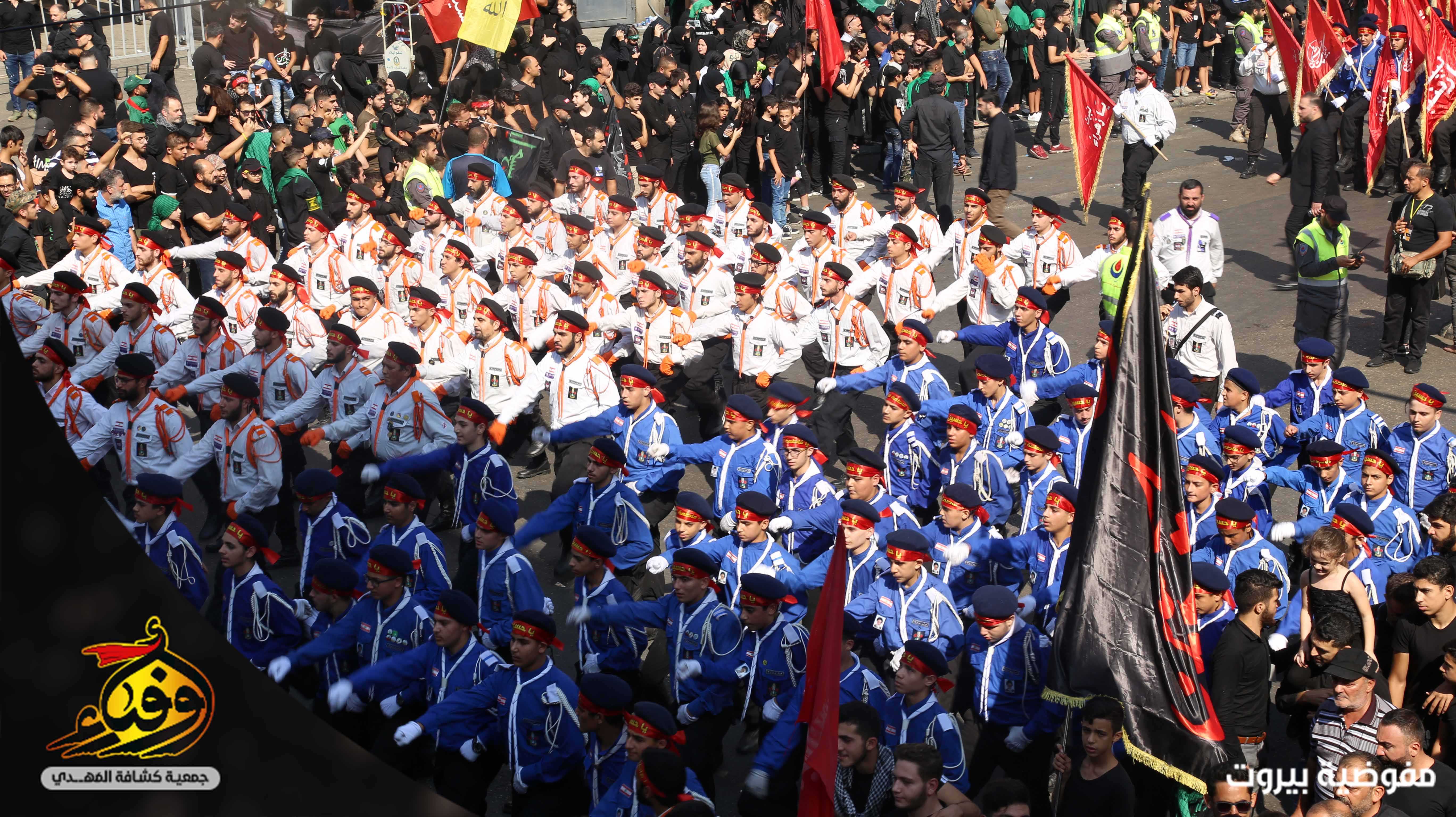 في مشهد مهيب بدأت مسيرة العاشر من محرّم يتقدمها 3793 حسيني وزينبيّة من مفوضية بيروت في جمعية كشافة المهدي (عج) حيث انطلقت مسيرة الاخوة من تقاطع القائم (عج) في الضاحية الجنوبية لبيروت باتجاه دوار الكفاءات تقدمها حملة صور القادة والفرقة الموسيقية المركزية وحظائر الاعلام وسريّة من القادة والجوالة مؤدين عرضا مميزا للنظام المرصوص تلتهم سرايا كوكبة الاعلام بالاضافة الى مواكب اللطم للكشافة.. اما مسيرة الاخوات انطلقت من الرويس باتجاه دوار الكفاءات تتقدمها الفتيات باللباس الكشفي حاملين الرايات و في موكب حاشد انتظمت الكشفيات مرتدين العباءة الزينبية لتختتم المسيرة بالاستماع لكلمة سماحة الامين العام حفظه الله.