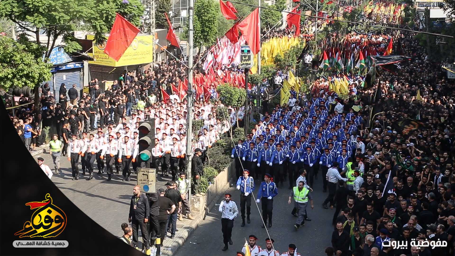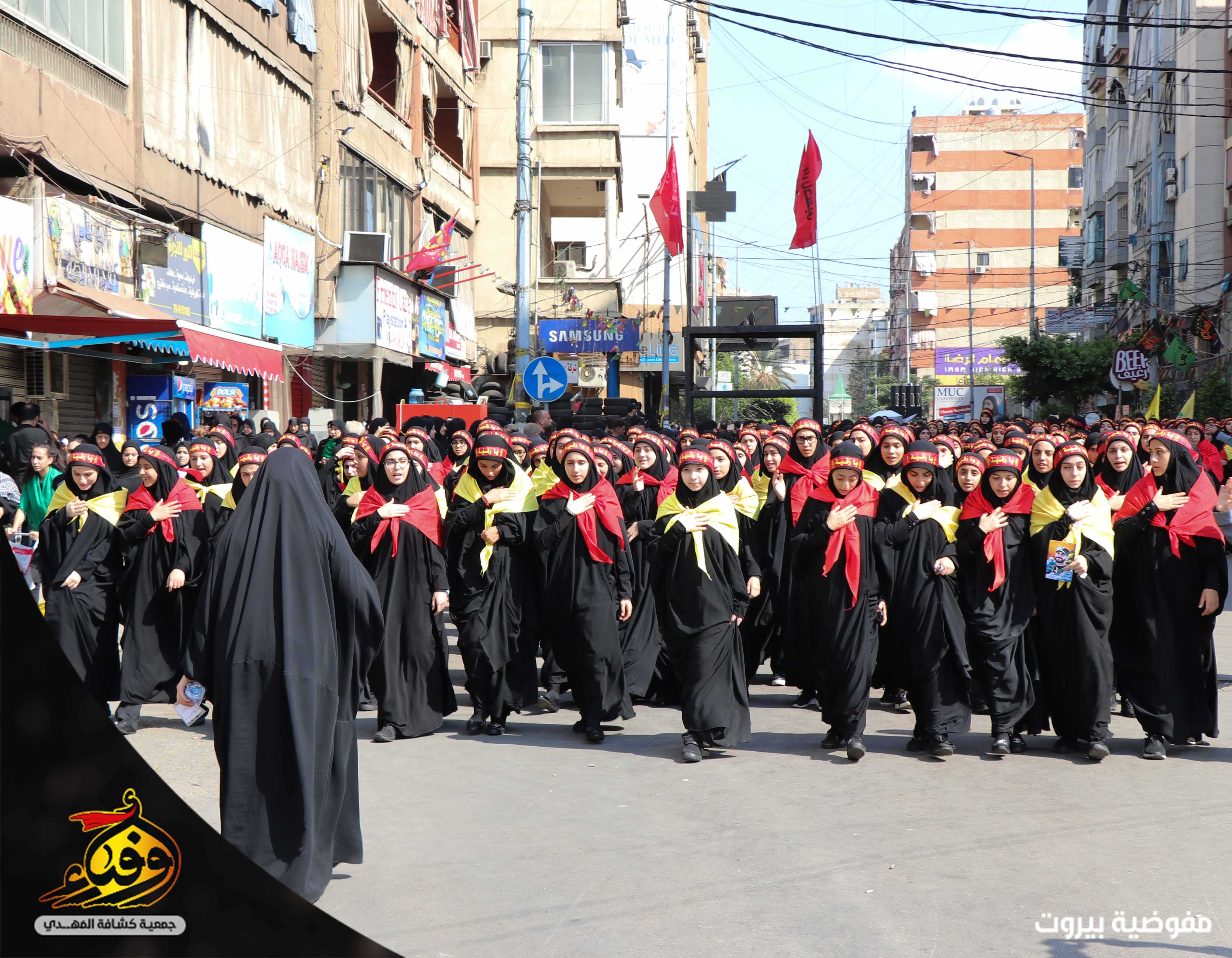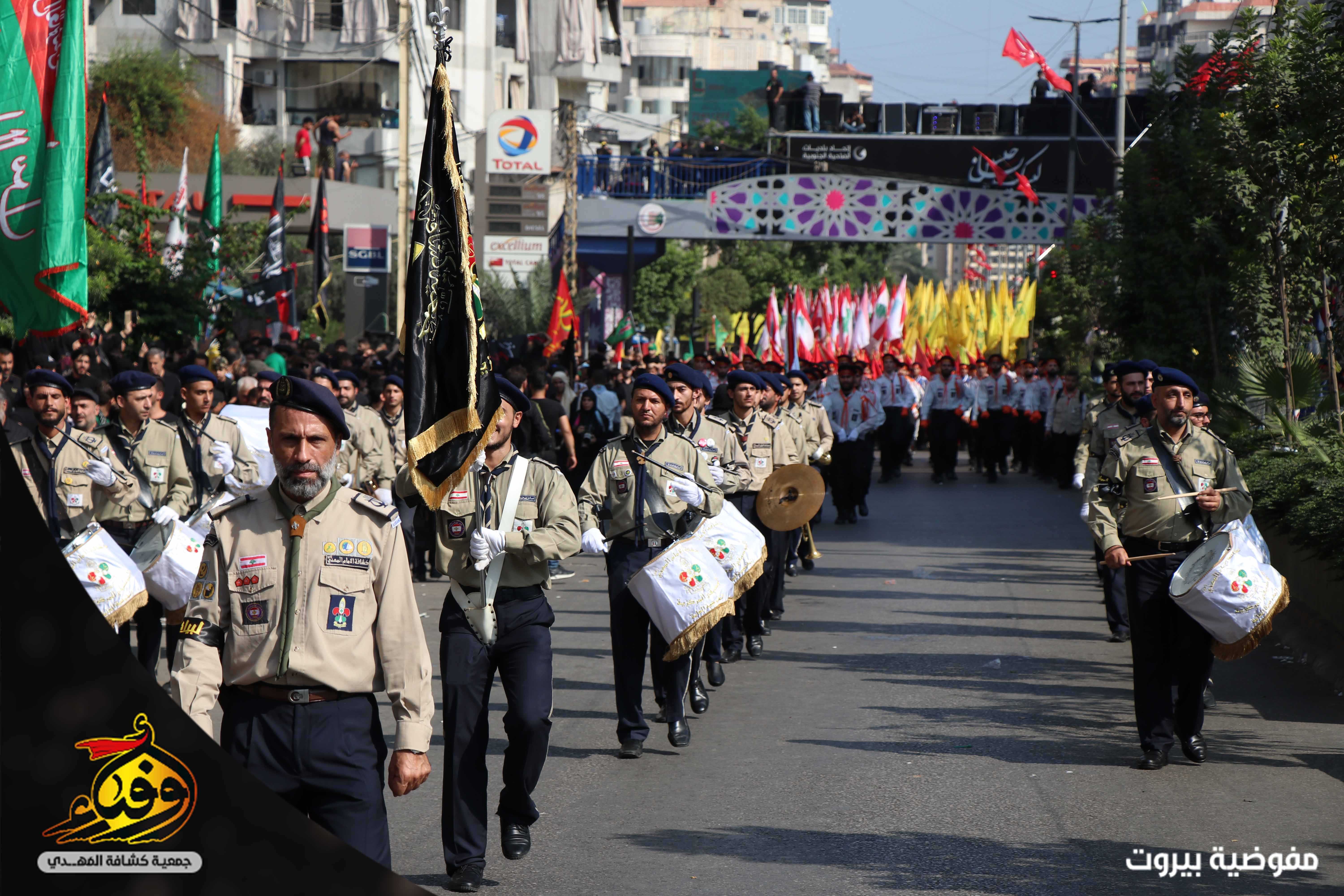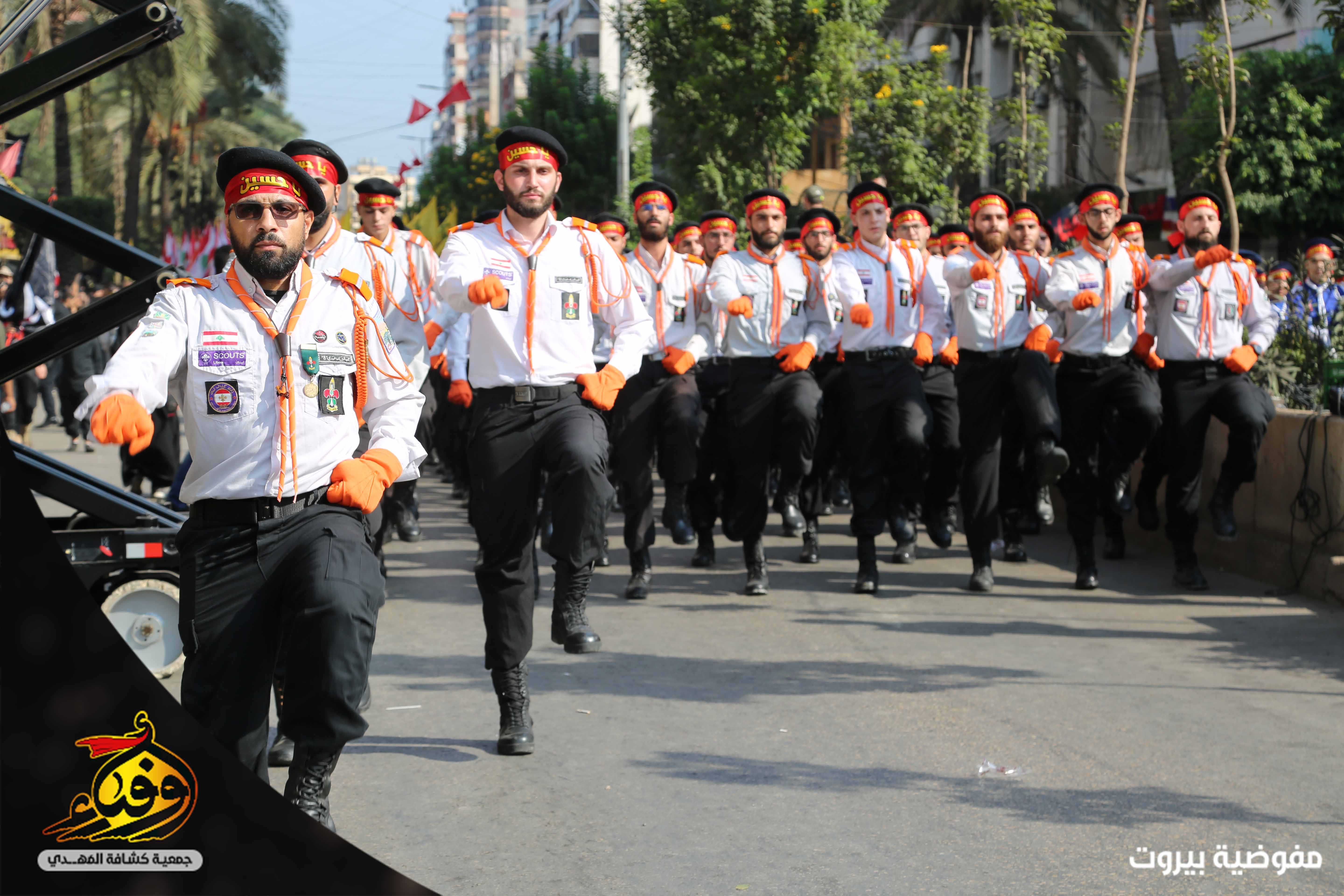 في مشهد مهيب بدأت مسيرة العاشر من محرّم يتقدمها 3793 حسيني وزينبيّة من مفوضية بيروت في جمعية كشافة المهدي (عج) حيث انطلقت مسيرة الاخوة من تقاطع القائم (عج) في الضاحية الجنوبية لبيروت باتجاه دوار الكفاءات تقدمها حملة صور القادة والفرقة الموسيقية المركزية وحظائر الاعلام وسريّة من القادة والجوالة مؤدين عرضا مميزا للنظام المرصوص تلتهم سرايا كوكبة الاعلام بالاضافة الى مواكب اللطم للكشافة.. اما مسيرة الاخوات انطلقت من الرويس باتجاه دوار الكفاءات تتقدمها الفتيات باللباس الكشفي حاملين الرايات و في موكب حاشد انتظمت الكشفيات مرتدين العباءة الزينبية لتختتم المسيرة بالاستماع لكلمة سماحة الامين العام حفظه الله.