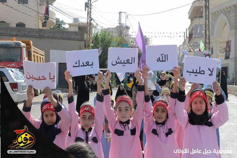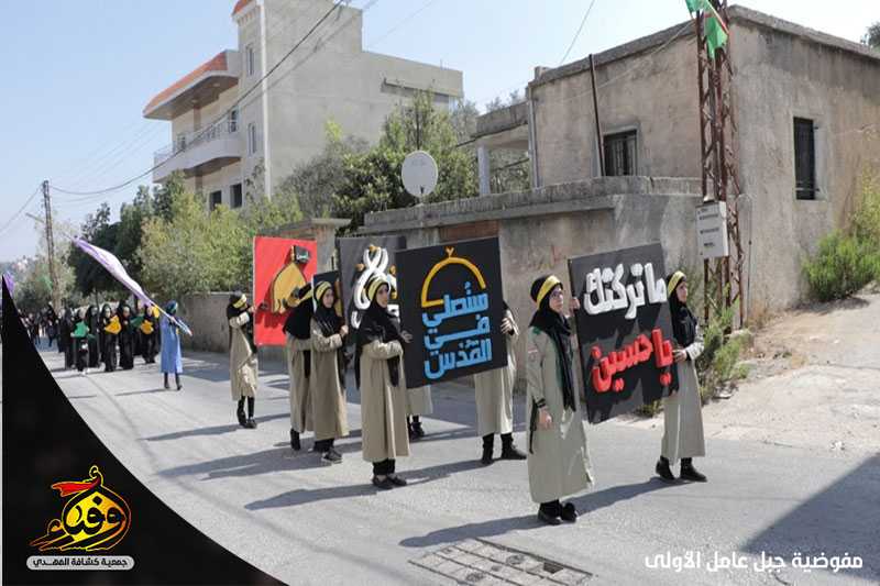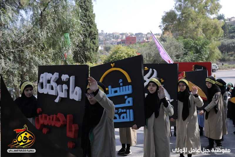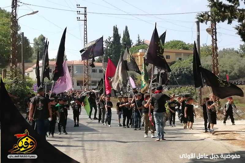 لبى حسينيو فوج الامام علي الرضا (عليه السلام) وزينبيات فوج السيده ام البنين/ الطيبة نداء الامام الحسين (عليه السلام) يوم العاشر من محرم وشاركوا في المسيرة الحسينية التي أقيمت في البلدة حاملين الرايات والمجسمات الفنية.