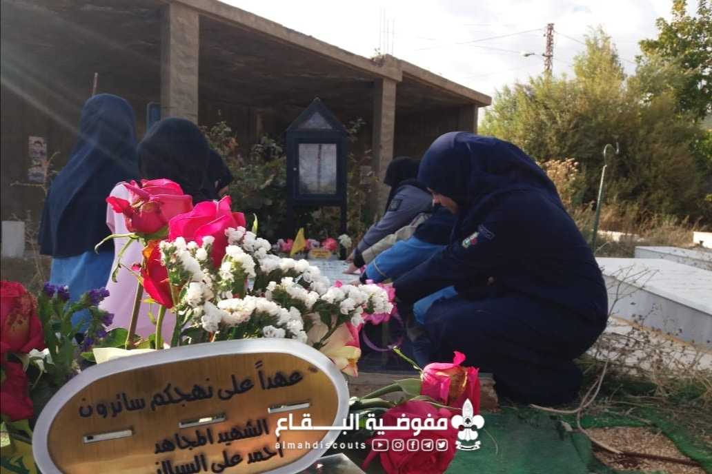 عند أضرحة الشهداء اجتمعت كشفيات فوج السيدة أم البنين/ فلاوى/ القطاع الغربي في يوم الشهيد بدأن بزيارة الأضرحة المباركة وتزينها، بعدها استمعن الى كلمة من وحي المناسبة والختام بمتمية قرآنية وأدعية متنوعة.