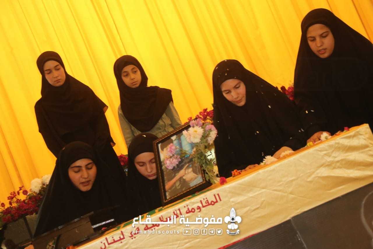 في اجواء يوم الشهيد قدم فوج السيدة الحوراء/ تمنين الفوقا/ القطاع الأوسط، عرضاً مسرحياً بعنوان "احباب الحسين" بقلم امينة التدريب في القطاع الحاجة و تلا العرض مجلس حسيني و مسيرة نحو اضرحة الشهداء لوضع أكاليل الورد عليها عربون شكر على العطاءات التي لا تقدر بثمن