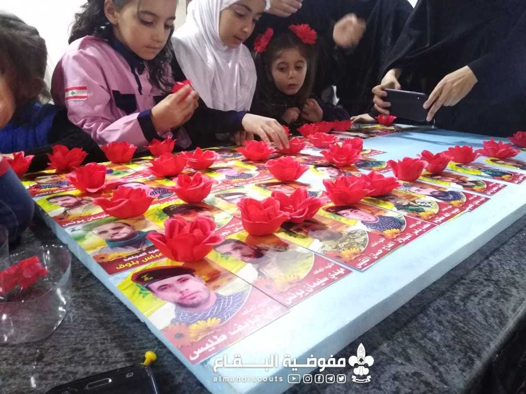 أحيا فوج السيدة زينب عليها السلام/ دورس يوم الشهيد بنشاط تعددت فقراته، من تلاوة قرآنية، الى لقاء مع ام الشهيد مهدي رعد تحدثت فيه عن مقتطفات من حياة الشهيد، فعرض فيلم، والختام بتنفيذ لوحة تضمنت صور شهداء بعلبك تم وضعها في جنة الشهداء