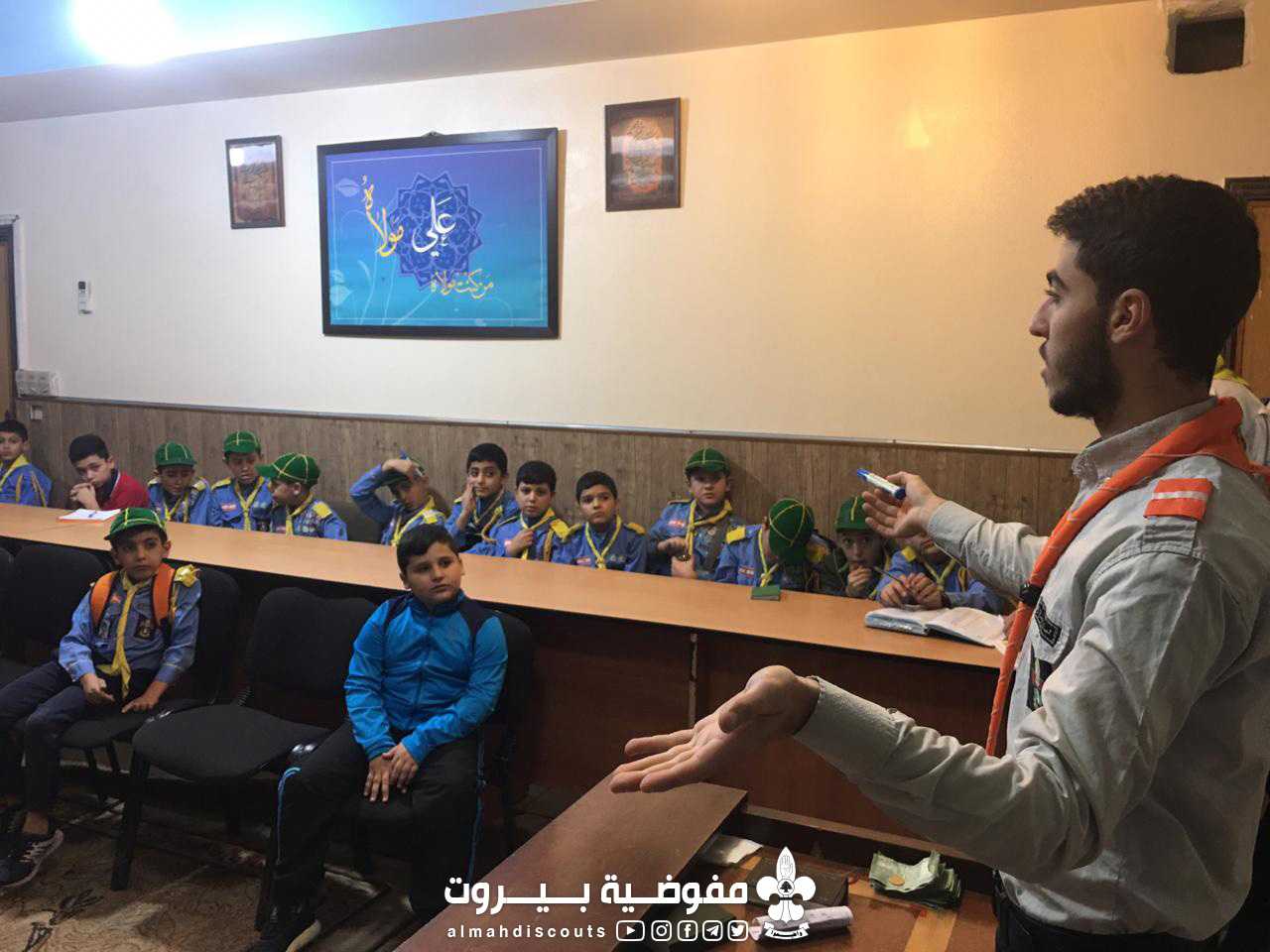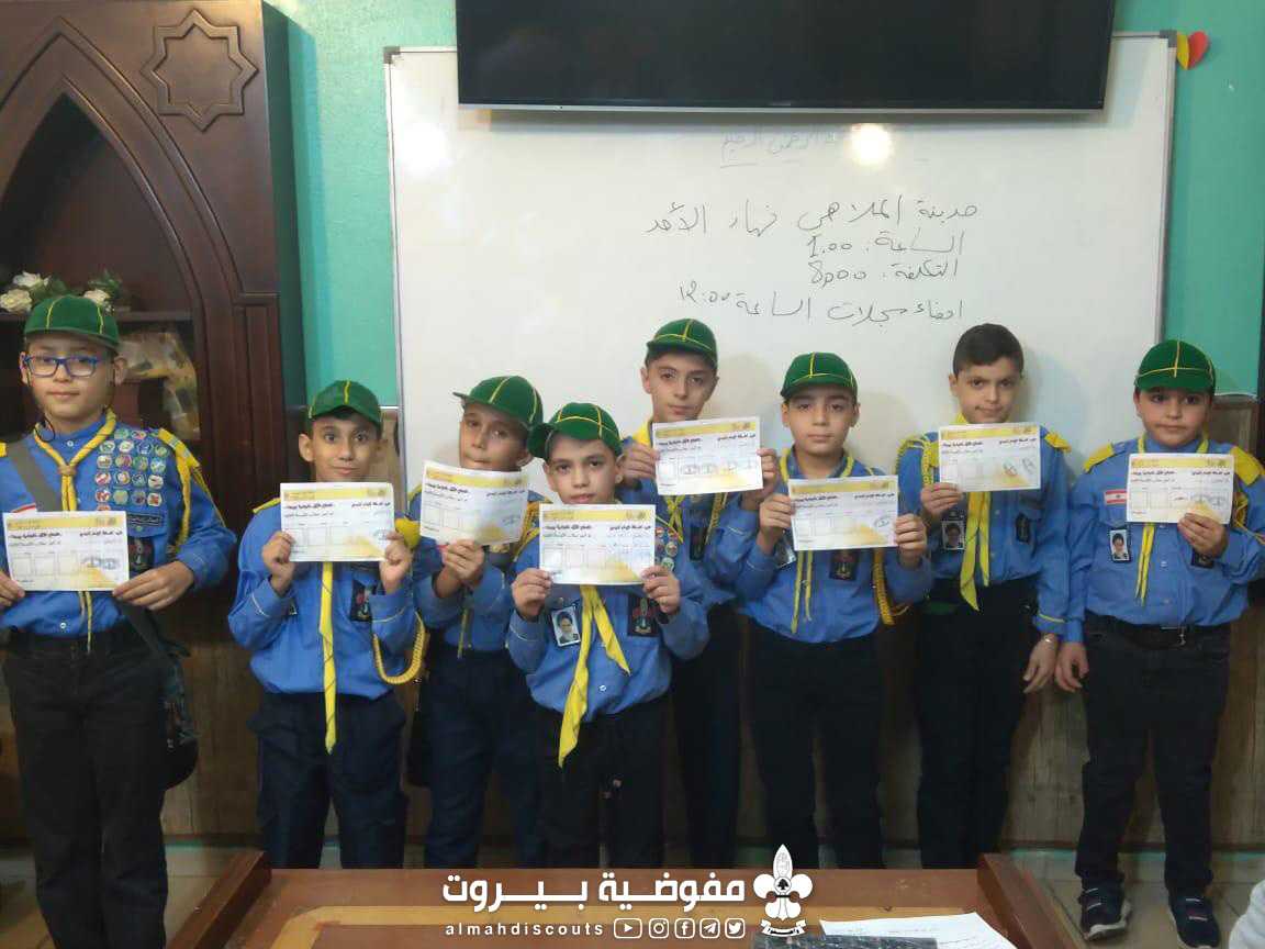 اقامت فرقة الاشبال في فوج مسلم بن عقيل (رض) _ قطاع الاول جلستها الاسبوعية ، بحضور ٥٠ شخص، تخللت الجلسة :شرح درس تحت عنوان مسار التقدم، توزيع اوسمة ، مراسم قبول + تكريس ،صرخات كشفية، تبليغات