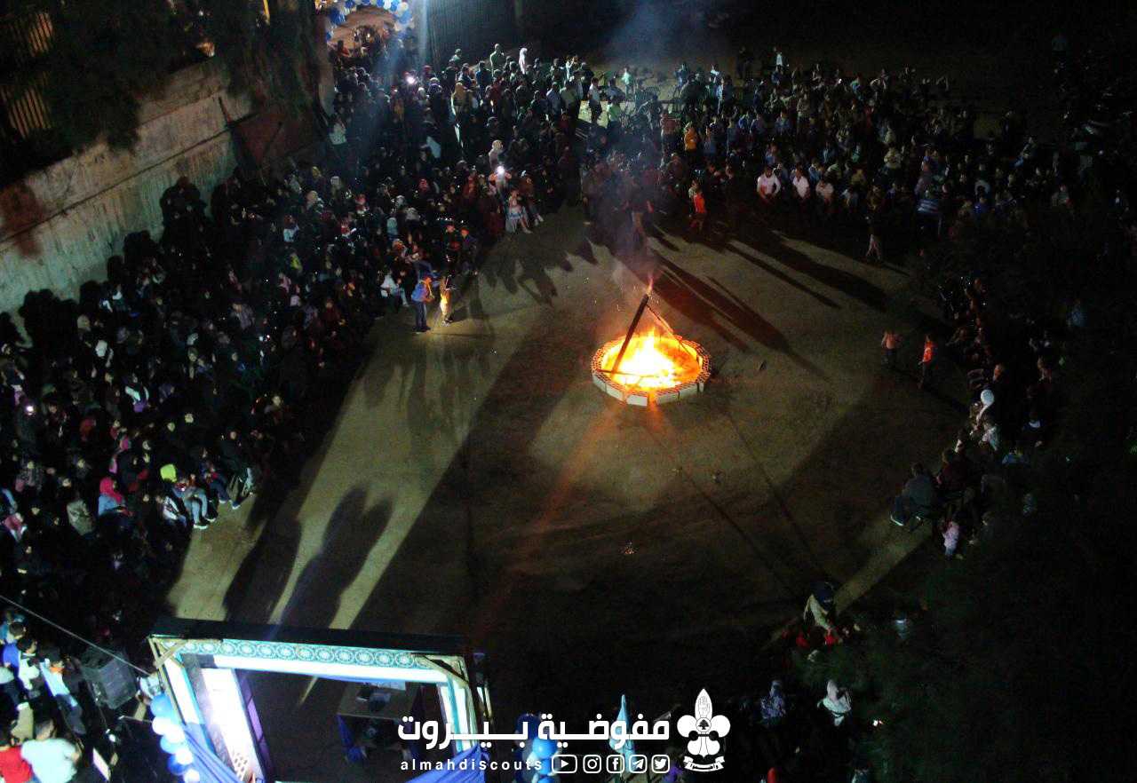 أُشعلت النار بالمراسم الكشفية وتخللت تواشيح ومولد من وحي المناسبة وأربع سكتشات تمثيلية منها الفكاهي وتم تمثيل سكتش المزهرية الخالية واختتمت السهرة بدعاء الحجة (عج)