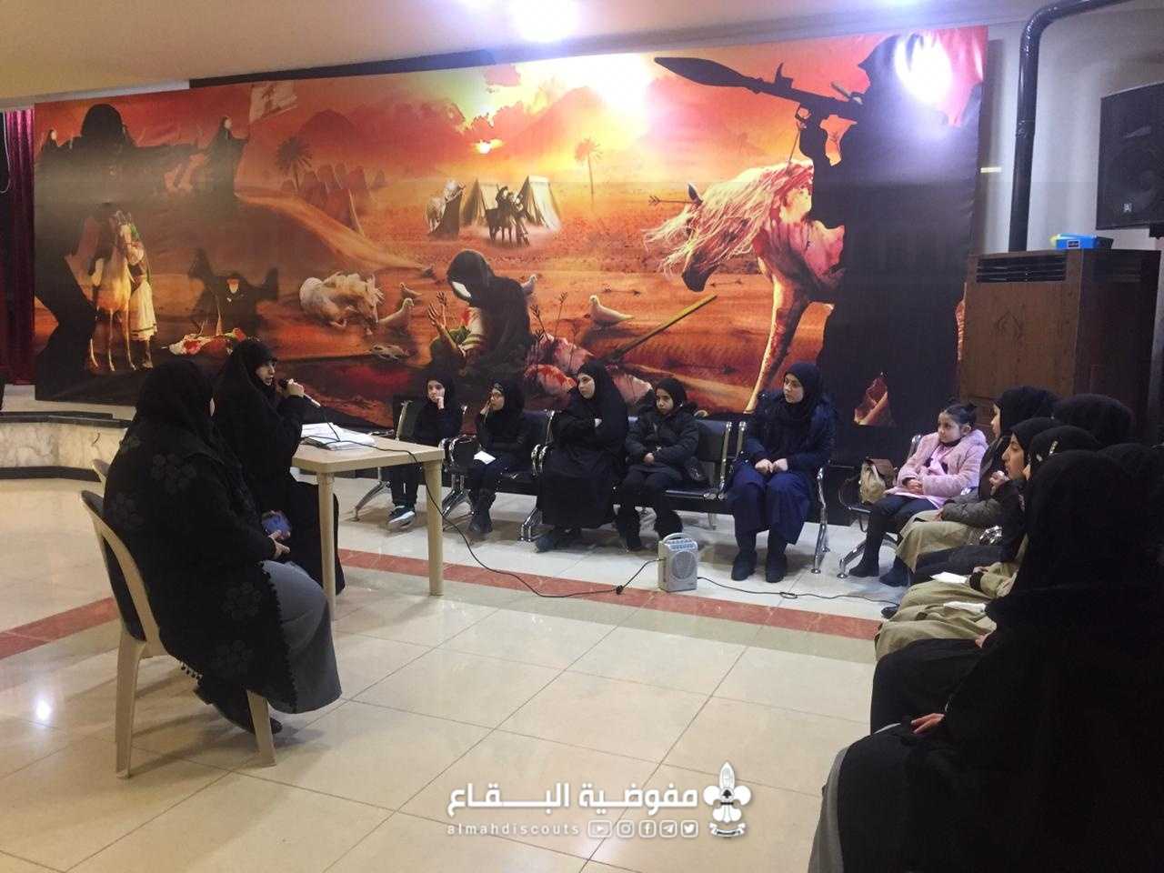 في ذكرى شهادة السيدة الزهراء عليها السلام، اجتمعت كشفيات فوج السيدة البتول/ الكرك/ القطاع الاوسط لاحياء هذه المناسبة الأليمة حيث تنوعت الفقرات من قصة و مجلس و مسابقة و توزيع الضيافة على حب فاطمة.