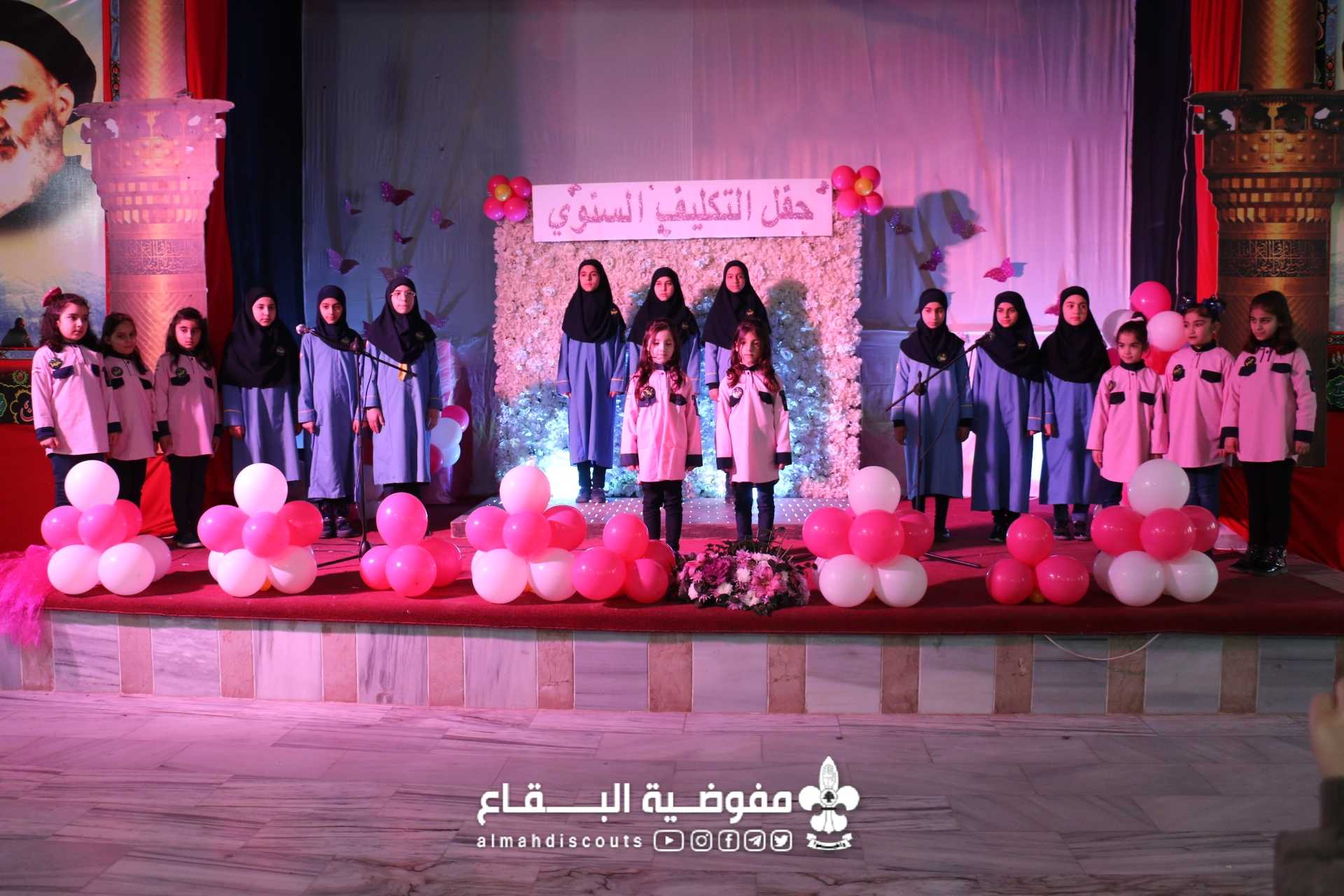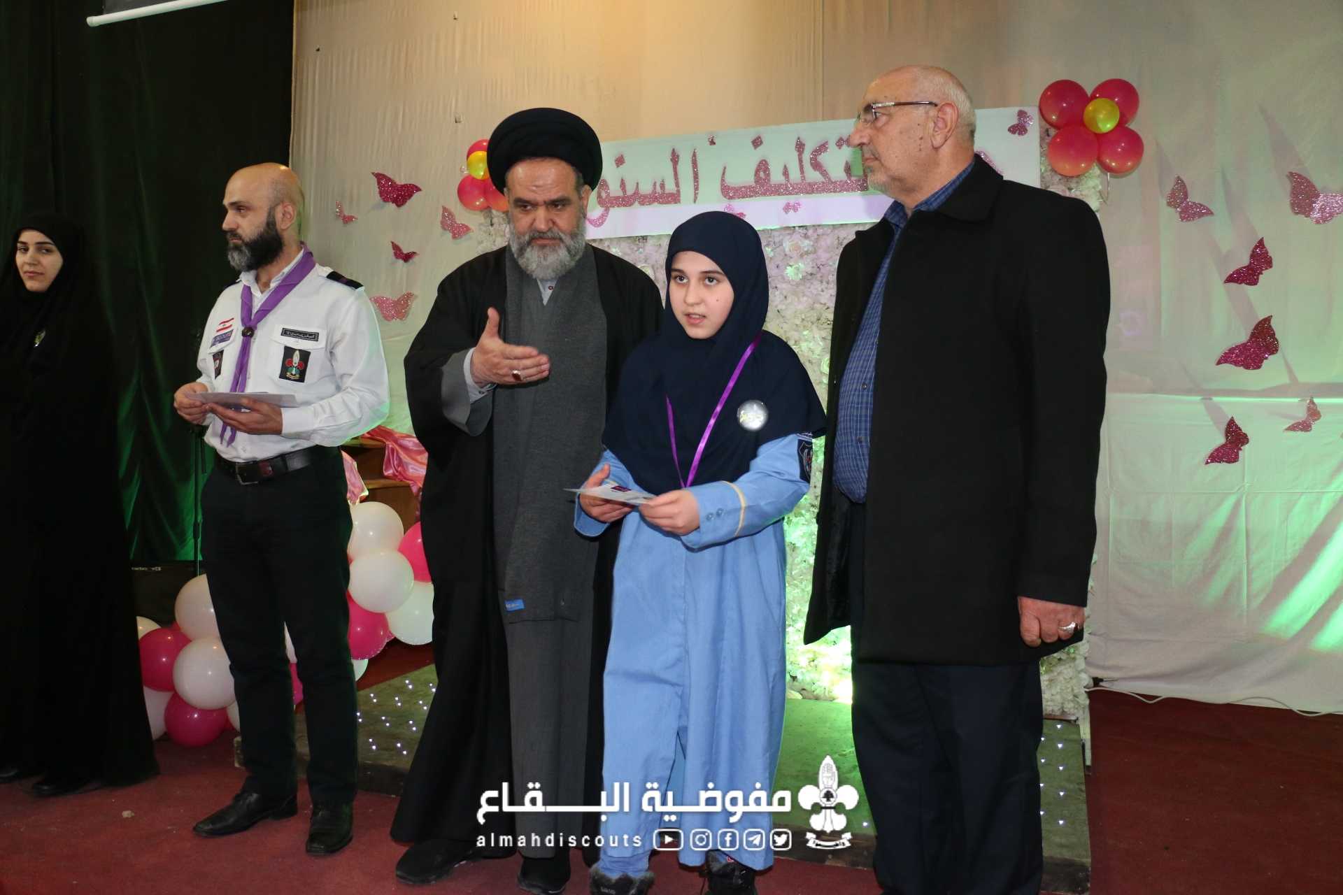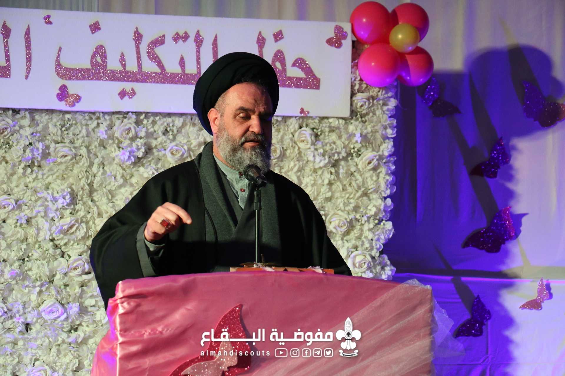 "لأنك الدُّر والمرجان" عنوان حفل التكليف الذي اقيم في فوج السيدة الزهراء عليها السلام/ البزالية/ القطاع الشمالي، وبرعاية وحضور سماحة السيد فيصل شكر، تم تتويج 48 زهرة مكلفة، امام أهالي البلدة وزميلاتهن ضمن حفل نُظم على شرفهن وفي اجواء ولادة الطهر البتول عليها السلام... افتتح الحفل بالقرآن والنشيد الرسمي لتكون بعدها الفقرات الفنية من اناشيد وأهازيج، ثم كلمة المكلفات، وختاماً كلمة الراعي الذي اثنى على عمل الجمعية في نشر ثقافة الحجاب والاقتداء بالسيدة الزهراء وبعدها تم سحب قرعة مسابقة السيدة الزهراء، تكريم الدليلات، وتقديم هدايا للمكلفات والفتيات اللواتي نلن لقب نجمة البتول