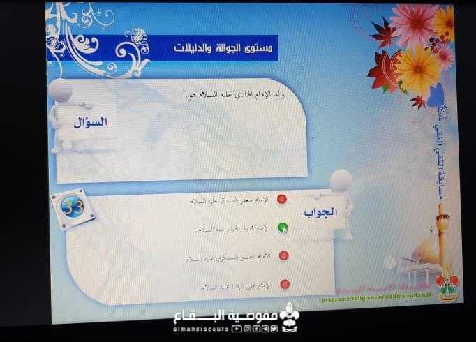 في اجواء المناسبات الثلاثة لأوائل رجب اقام فوج السيدة خولة/ تمنين التحتا/ القطاع الاوسط مسابقة هاتفية لكل الفئات العمرية عن ولادة الامامين الباقر والهادي عليهما السلام بمشاركة ٤٣ كشفية . ومسابقة خاصة بفرقة الدليلات عن شهادة الهادي عليه السلام بمشاركة ١٨ دليلة .كما وسيتم سحب القرعة عند اول نشاط يقام الفوج.