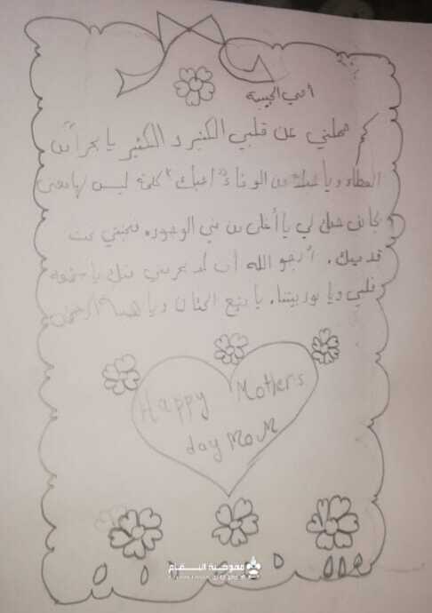 *بأناملهن* صنعن معايدتهن لامهاتهن هن برعمات و زهرات فوج البتول /النبي شيت غربي في القطاع الشرقي حرصن على اقامة نشاط عيد الام ضمن منازلهن فكانت بطاقات المعايدة ورسائل الحب للام والرسومات التي تعبر عن العرفان بحق الام واحترامها