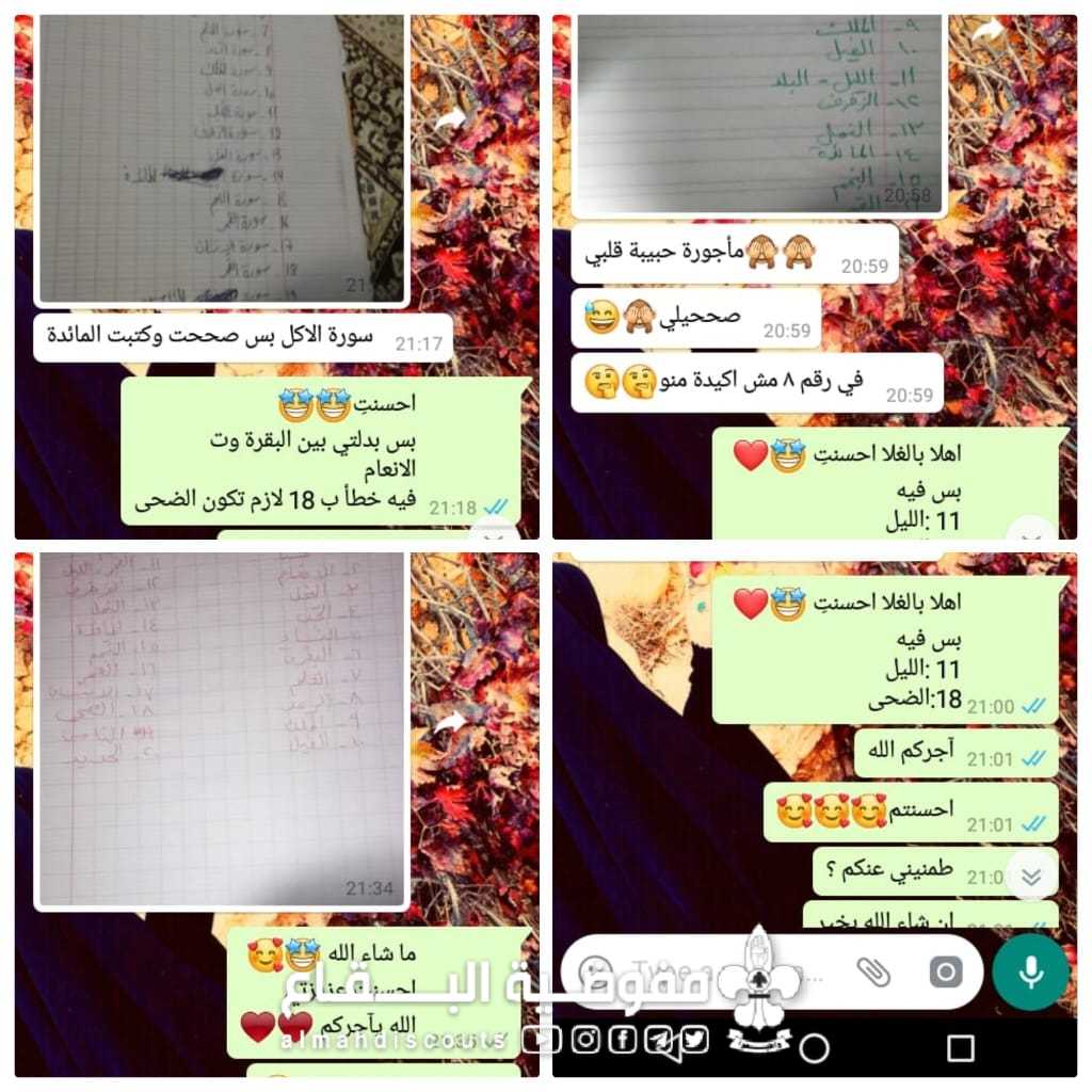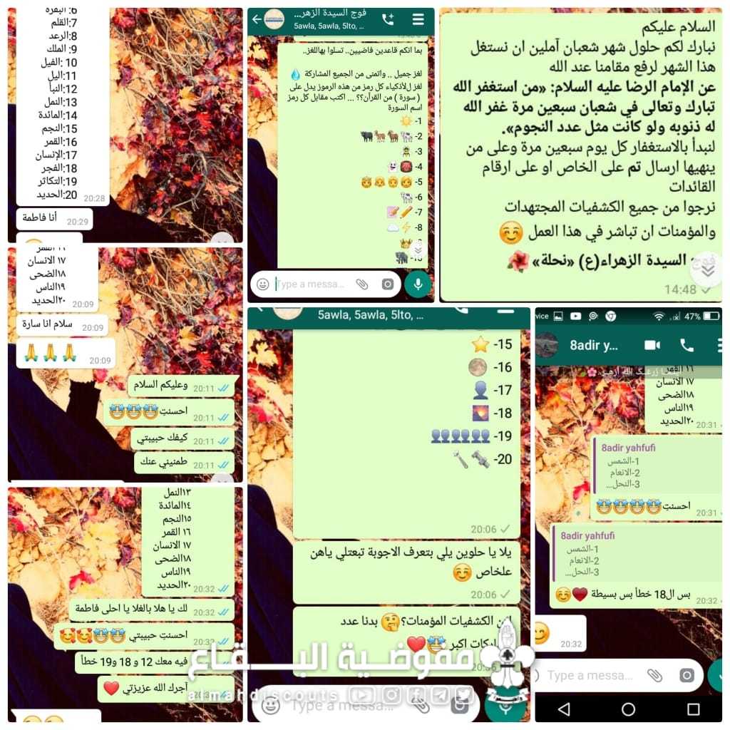 تفعيلا للنشاطات الالكترونية أقام فوج السيدة الزهراء/نحلة/ قطاع بعلبك فقرات متنوعة ارسلها للكشفيات عبر الهاتف وكان منها بعض الاذكار كالاستغفار و ذكر فضله في هذه الأشهر المباركة و حث العناصر على المشاركة، مسابقة ثقافية ترفيهية ( اكتشاف أسماء السور القرآنية)، والختام بحث الكشفيات على إضاءة الشموع و الاحتفال بالولادات المباركة