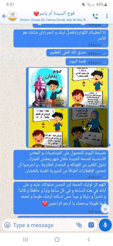 استقبلت افواج قطاع الولاية شهر رمضان المبارك بالزينة والمعايدات للكشفيات والأهالي واطلقن البرامج الرمضانية التي تجمع العديد من الفقرات كما في فوج السيدة رباب، السيدة الطاهرة، السيدة صفية، وغيرها من افواج القطاع كما وكانت الورش الخاصة باحكام الصوم والتقليد في فوجي السيدة رباب وأم ياسر اما افواج السيدة المعصومة، أم البنين وغيرها من الافواج فكانت الانشطة اليومية من اعمال مستحبة وختميات قرآنية، متابعة الاربعون صباح، والقصص العديدة بجو رمضاني مميز