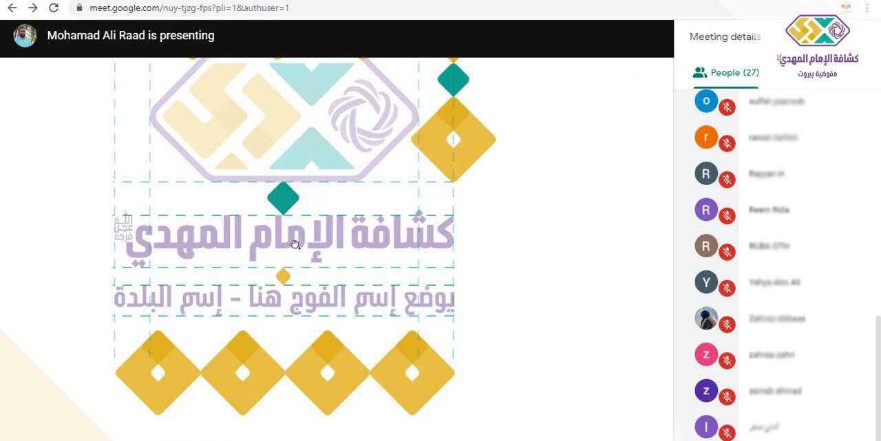 قدم الورشة أمين الاعلام الالكتروني القائد محمد رعد عبر تطبيق google meet