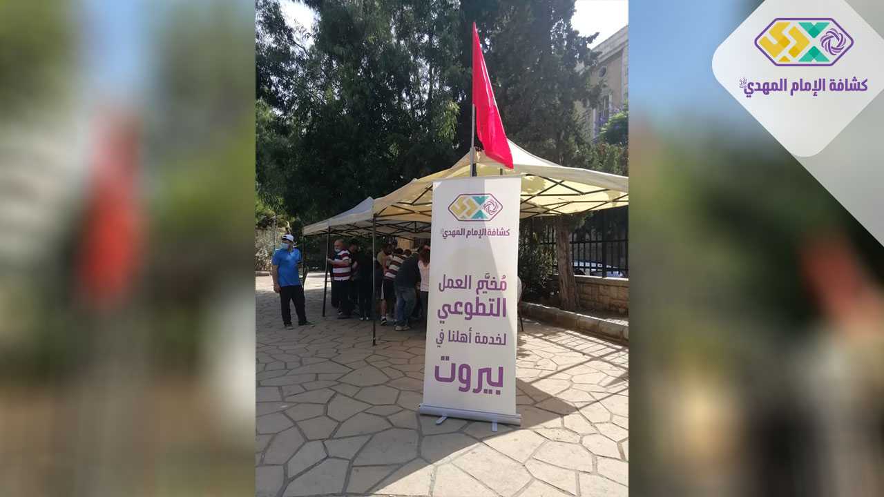 بعد أن ساهمت في إزالة الركام ورفع أضرار الانفجار وتقديم العديد من الخدمات اللوجستية، أنشأت مفوضية بيروت في جمعية كشافة المهدي (عجّل الله فرجه) مخيماً تطوعياً في حديقة كرم العريس في بيروت، واستقبلت فيه كل الراغبين للتطوع للمساهمة بتخفيف هول الكارثة عن كاهل أهلنا في العاصمة. تعددت أنشطة المخيم ما بين مساعدة الأهالي في إزالة آثار الإنفجار أمام المباني والمحال التجارية، وتوزيع حصصٍ تموينية بالتعاون مع مخاتير المنطقة إضافةً إلى توزيع وجباتٍ غذائية للمتضررين من أبناء المنطقة.