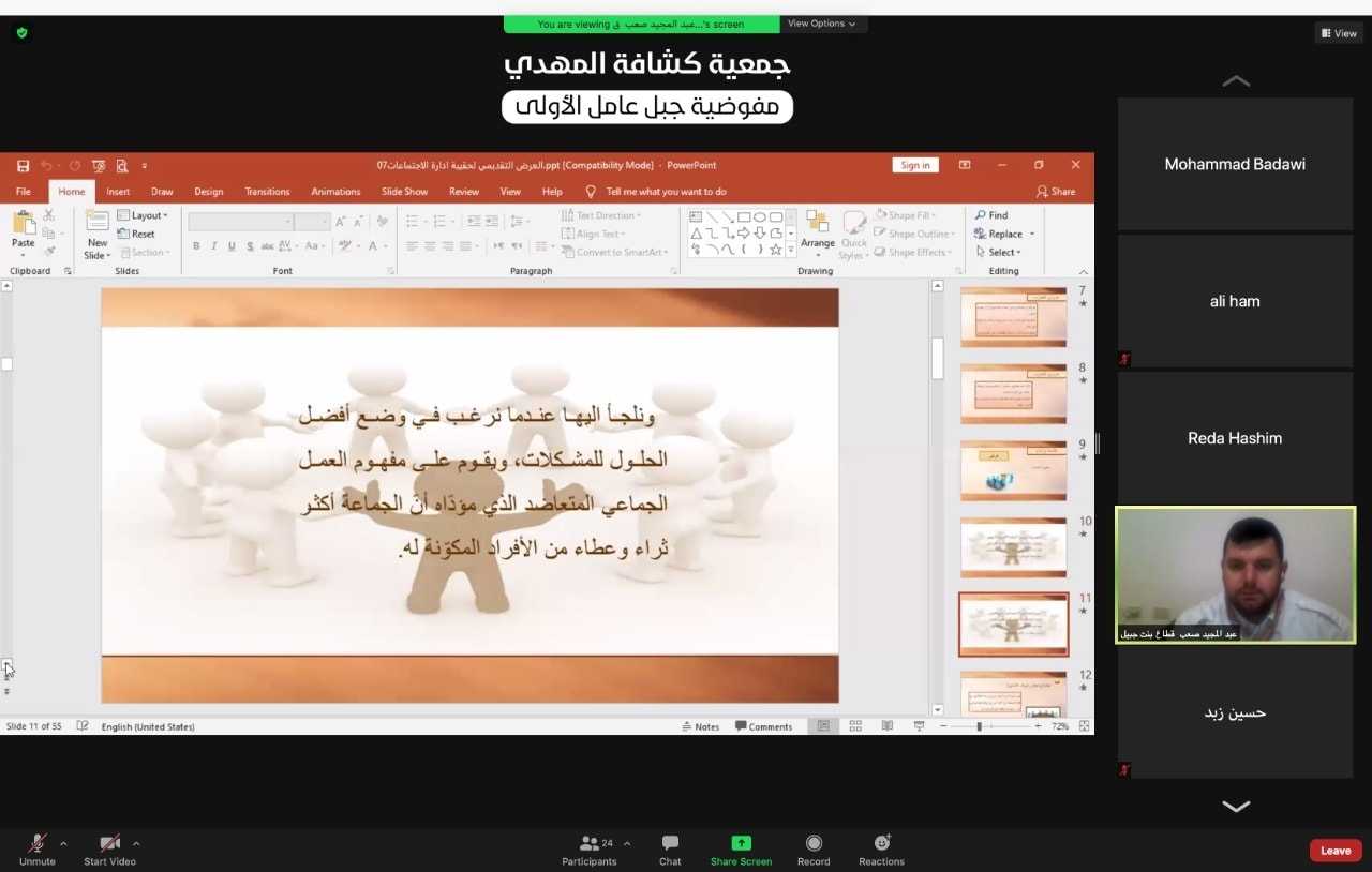 في ثاني ايام المخيم التدريبي الالكتروني للقادة، تعرف المتدربون في دورة شارة الجوالة \"أمير الميادين\" على :الطريقة الكشفية، النظام المرصوص، ادارة اجتماعات الوحدات.
