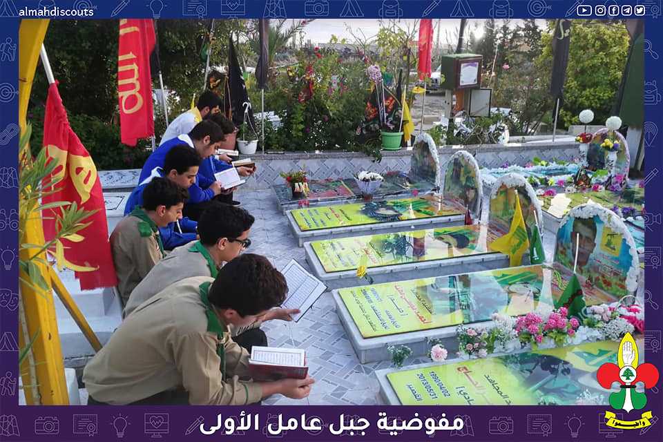 في أجواء يوم الشهيد أقام جوالة وكشافة فوج الإمام الجواد(ع)/ مدينة صور ختمية قرآنية عن أرواح الشهداء في روضة الشهداء في المدينة.