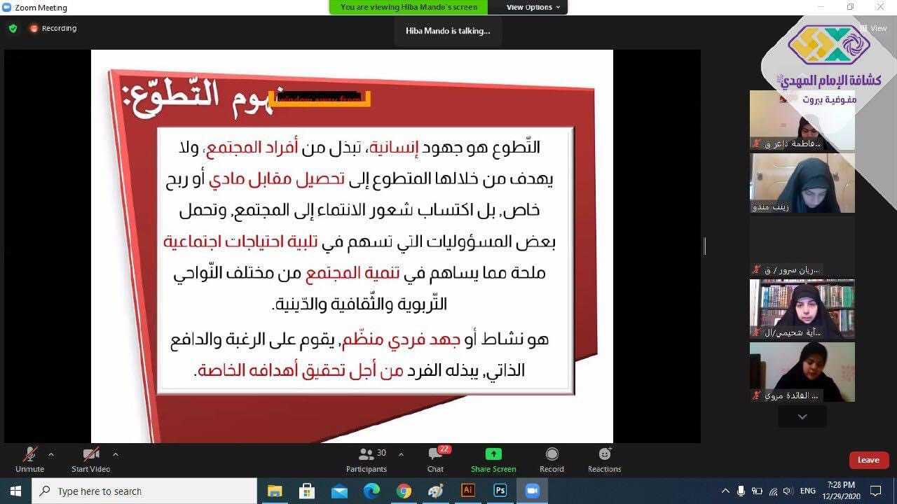 استكملت دراسة "عقيلة بني هاشم" يومها الرابع في دورة قائدة بحضور 33 متدربة وقائدة