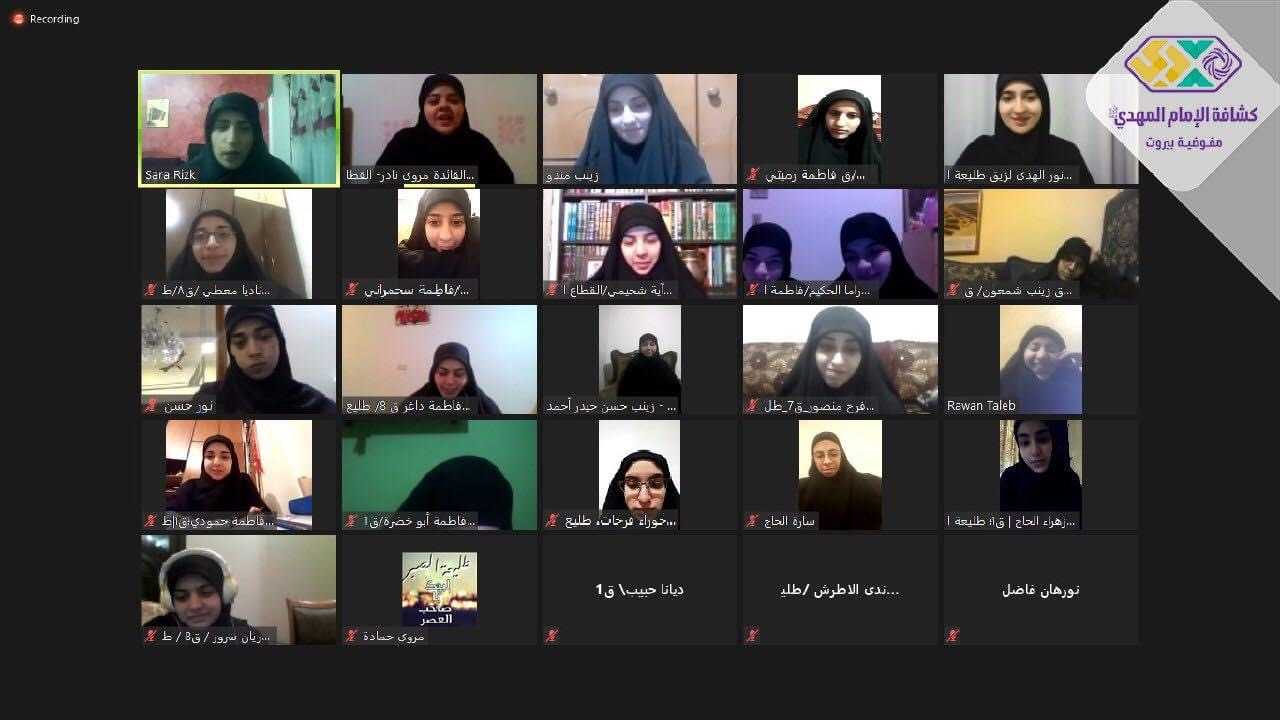حيث تعرَّفن على أُسرة مهدي الالكترونية بجوِّ من النقاشات والامثلة اليومية، واستمعن للسيد حسين أمين السيد خلال محاضرته في حفل العباءة الزينبية، ثم الى ورشة التطوع والاستقطاب. واختتمن يومهن بروحٍ فاطمية حيث قُصَّت عليهن قصة من وحي شهادة السيدة الزهراء (ع) ومناجاة المتوسلين.