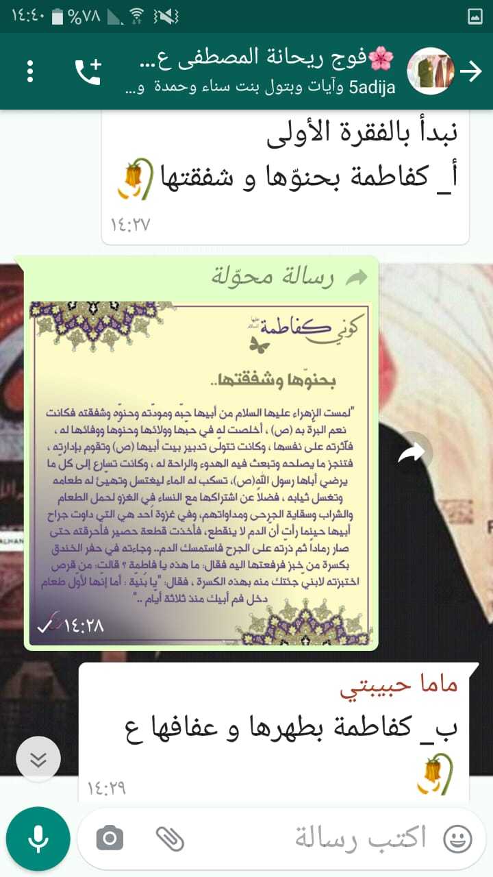 ايام فاطمية عشر، اعلنت خلالها أفواج مفوضية البقاع العزاء ونشرو السواد، والحزن يلف القلوب، ومن على منابر العالم الافتراضي اقيمت المجالس والأنشطة المتنوعة احياء للذكرى فكانت الختميات القرآنية، الأدعية والزيارات، البرامج العبادية والدروس التقافية والدينية، مسابقات من وحي المناسبة، أعمال فنية ورسومات، بالإضافة الى الانتاجات الإعلامية لتعزيز علاقة الأفراد بالسيدة الزهراء عليها السلام وعلى حبها كان 19 نشاط بمشاركة 744 كشفية فاطمية