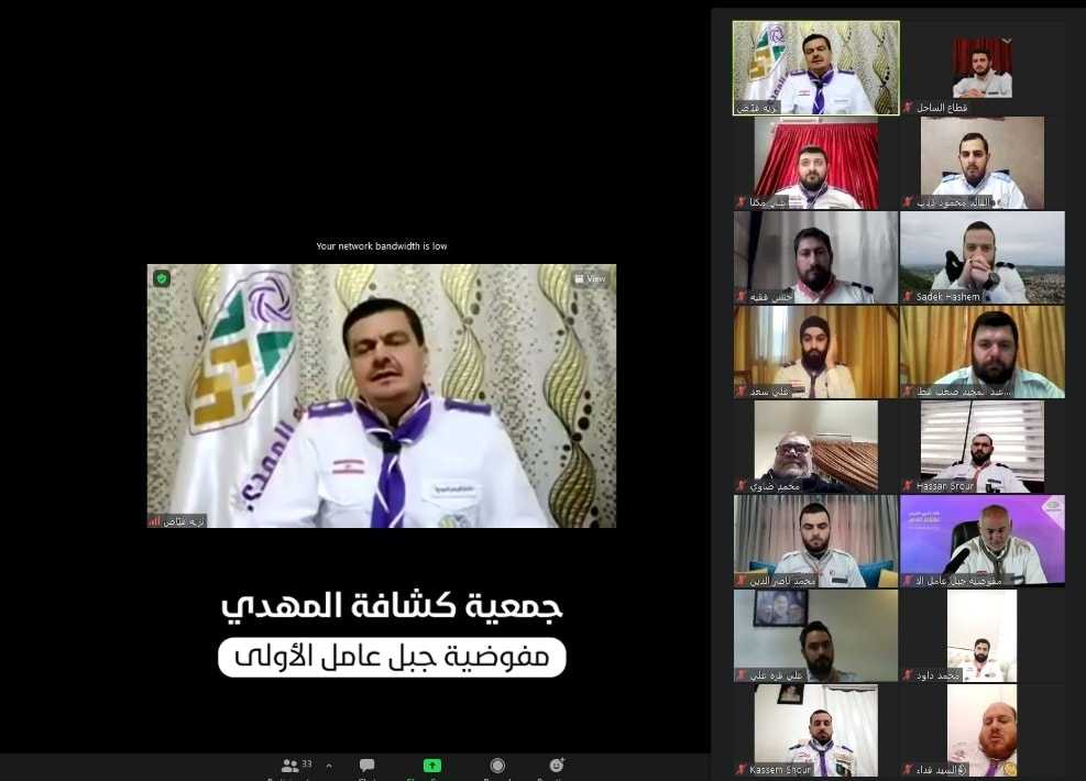 في أجواء ولادة سيدة نساء العالمين السيدة الزهراء (عليها السلام) وبرعاية القائد العام لجمعية كشافة المهدي (عجل الله تعالى فرجه) الشيخ نزيه فياض أقامت مفوضية جبل عامل الأولى اللقاء التدريبي التقييمي \"عطاؤكم كله خير\" عبر تطبيق الزوم وبمشاركة المدربين والمدربات اللذين شاركوا في التدريب خلال دورات عام 2020.
