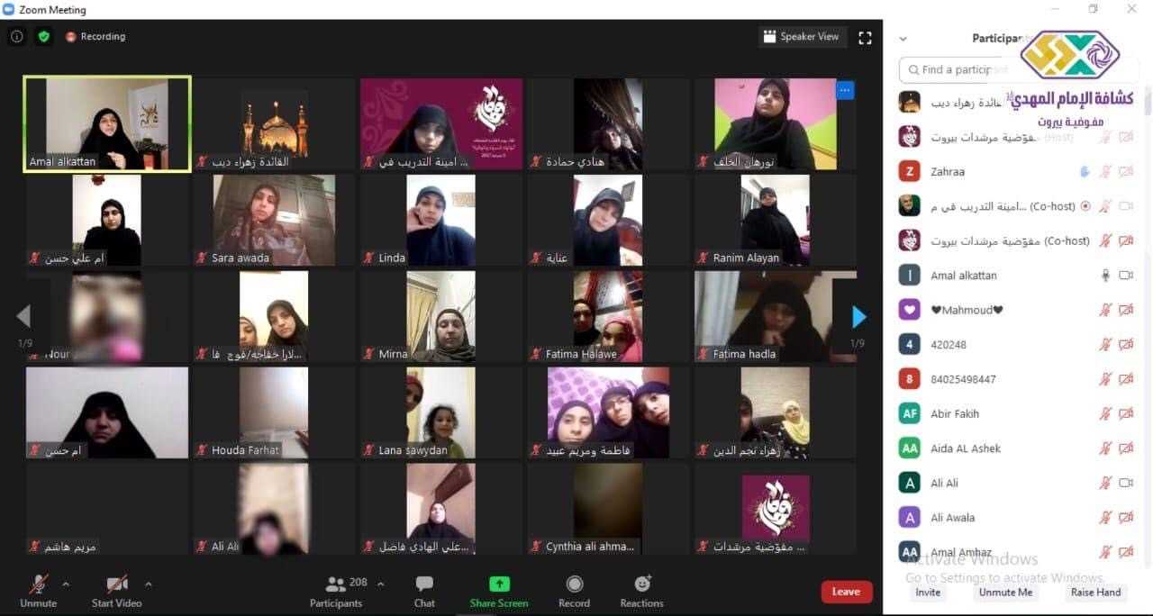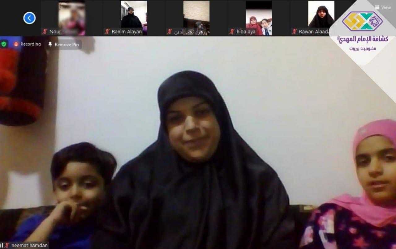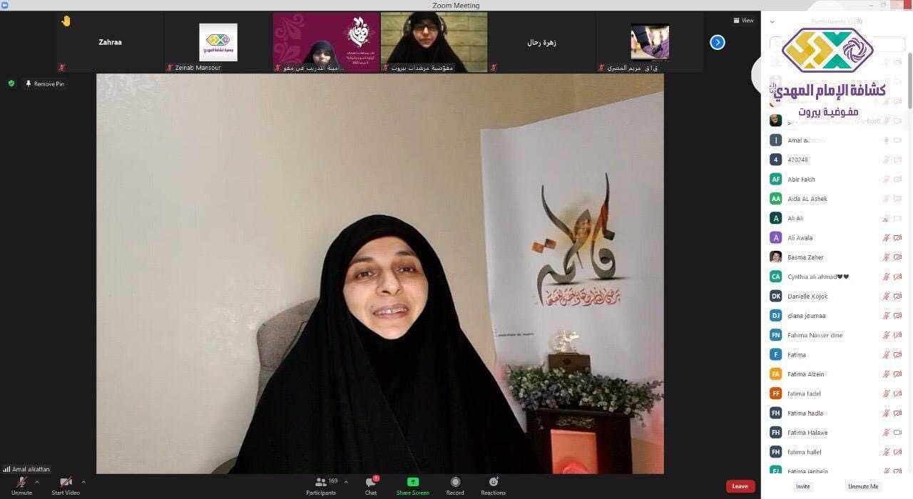 "الزهراء قدوة الأمهات" تحت هذا العنوان كان اللقاء الثقافي الذي نفذته مفوضية مرشدات بيروت مع الحاجة أمل قطان على برنامج الزووم في أجواء ولادة السيدة الزهراء (ع) حيث قارب العديد المشارك ٢٥٠ من الامهات والقائدات الكشفيات.