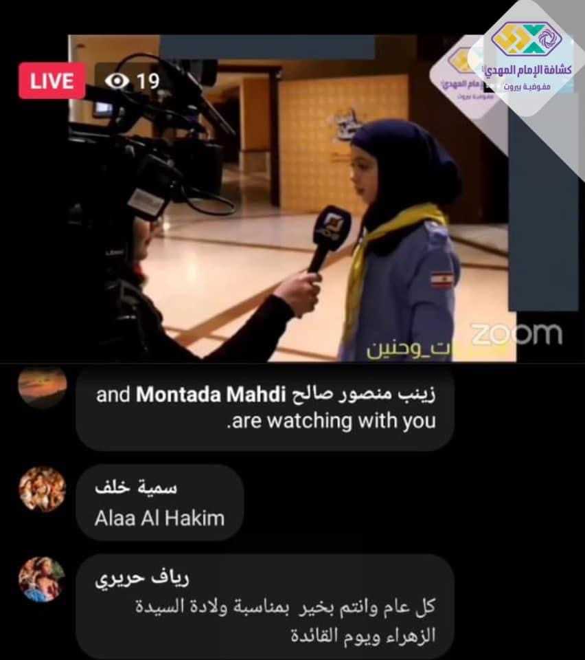 في محضر الولادة وعلى وقع نبضات العشق لفاطمة (ع) ولمناسبة يوم القائدة كان لقاء "زهراء نور الوجود" الذي أقامته مفوضية بيروت برعاية المفوض العام الشيخ نزيه فياض وتشرف بحضور مفوضة المرشدات العامة ومفوض ومفوضة مرشدات بيروت وعدد من الضيوف الكرام..