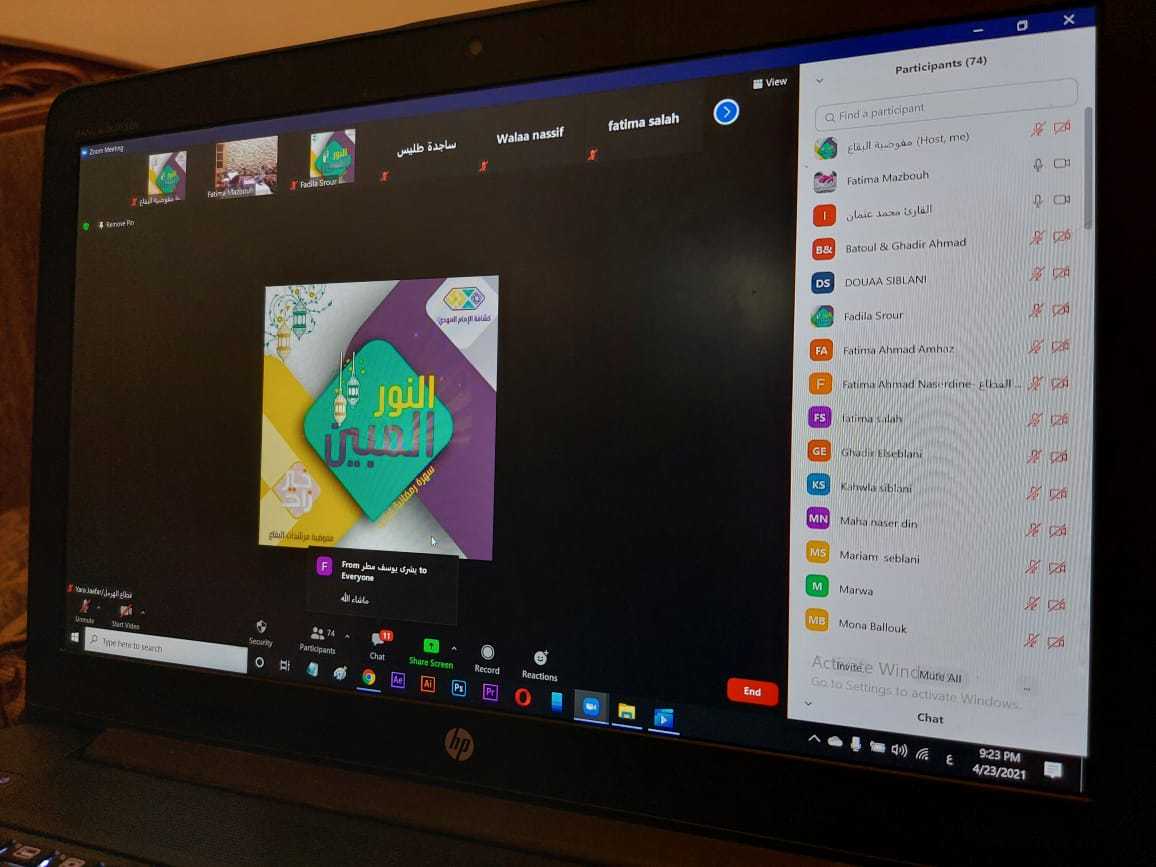 على ضوء قمر شهر رمضان المبارك، وعلى صوت اعذب الكلام كلام القرآن الكريم اجتمعت قائدات مفوضية مرشدات البقاع في الأمسية القرآنية الالكترونية " النور المبين"...