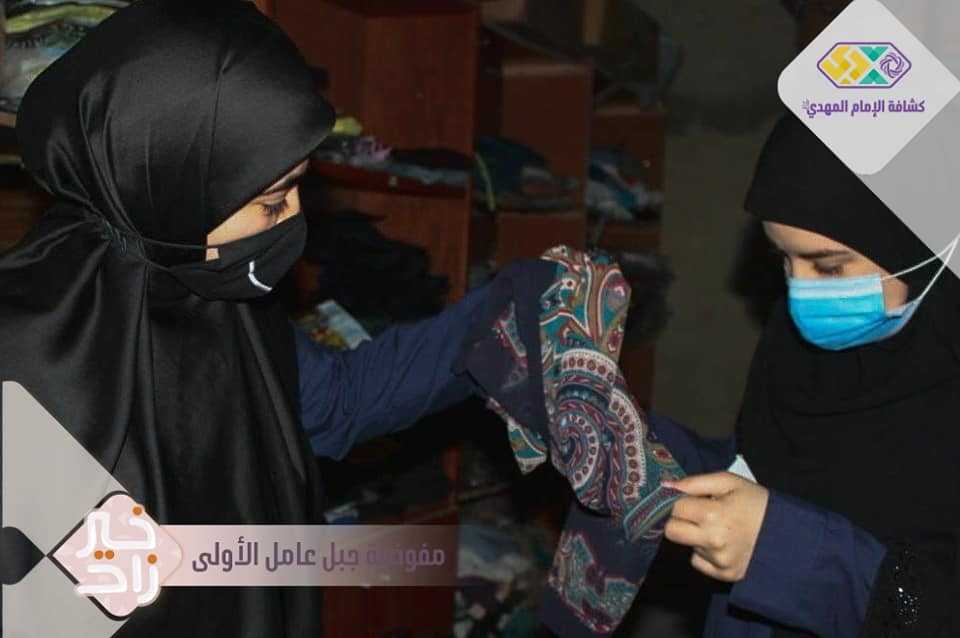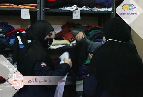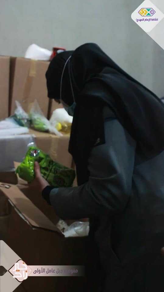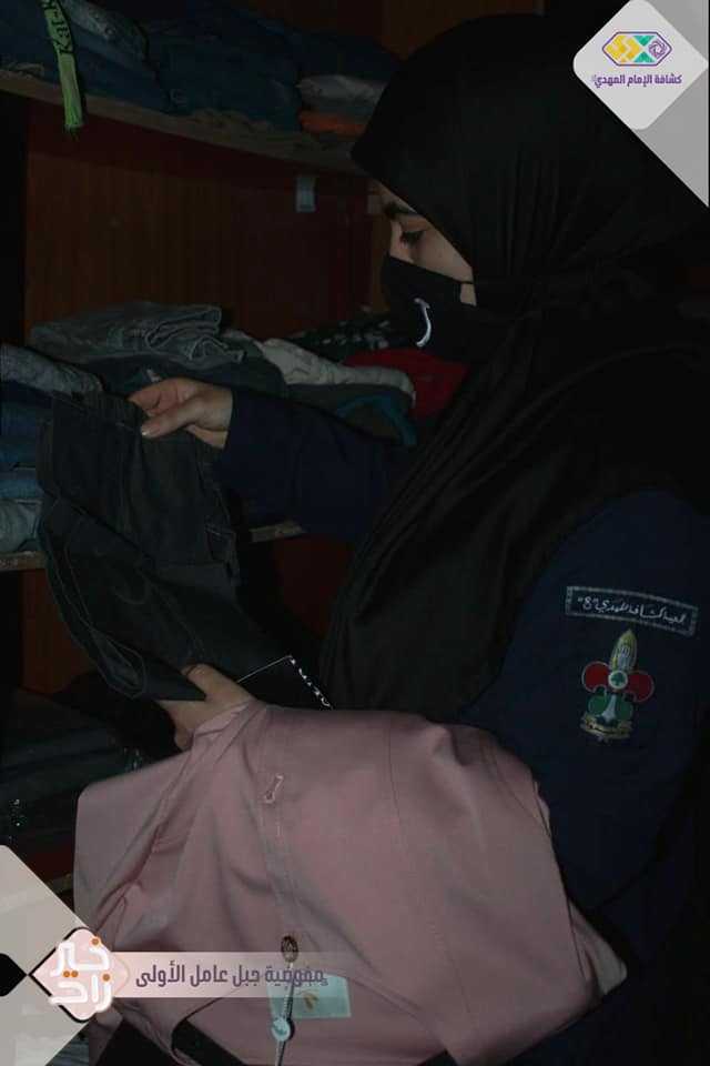 دليلات فوج الغريبة (عليها السلام)/المساكن يشاركن في خدمة عيال الله عبر توضيب حصص غذائية وكسوة العيد في مركز الإمام الخميني (قدّس الله سرّه)/ الحوش.