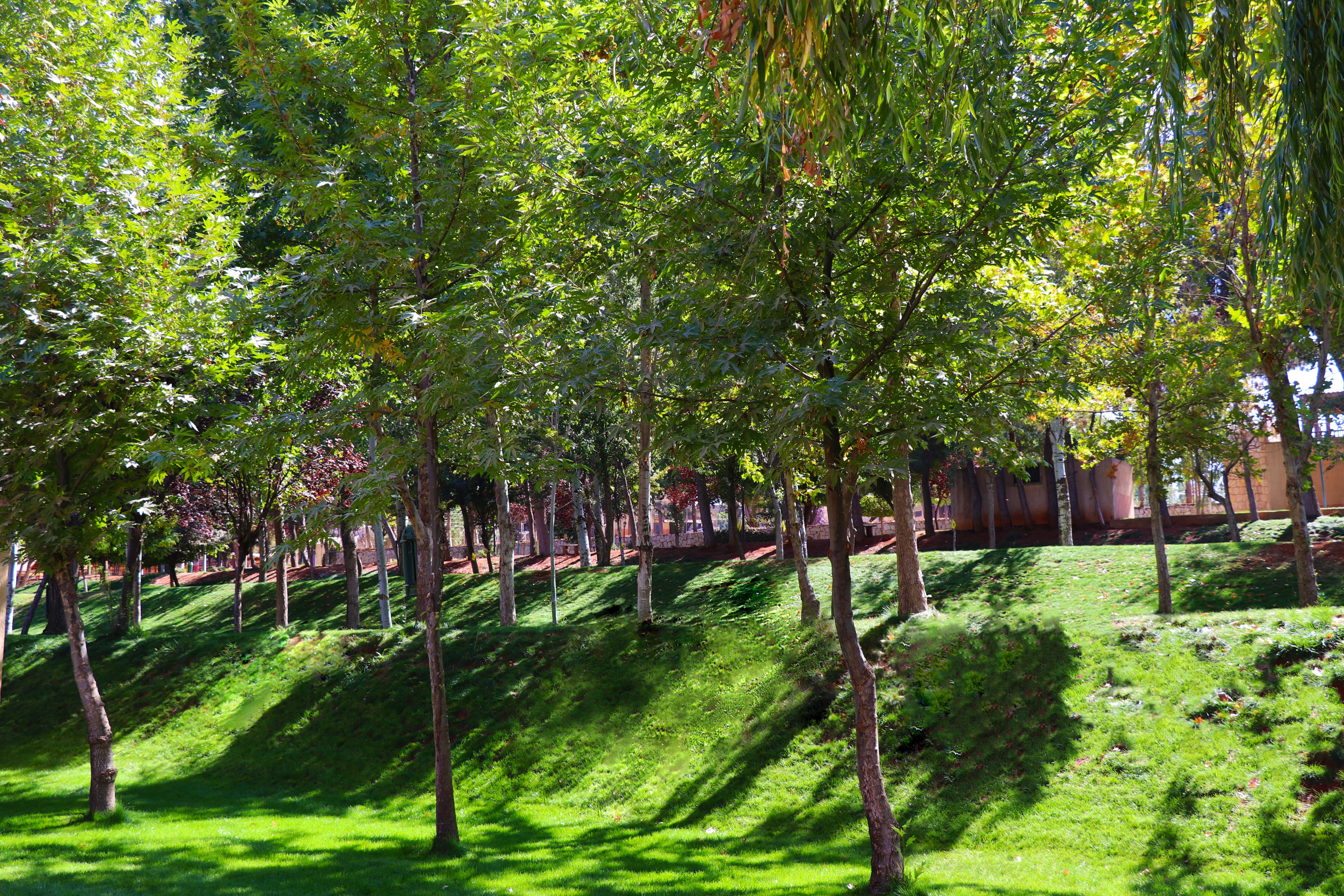 وحول الحدائق المنشرة في أرجاء المدينة، أشار إلى أنها "تغطي أغلب مساحات المدينة وتحتوي على الاشجار المتنوعة التي تحيطها الورود من كل جانب، ومقاعد خشبية ومعدات رياضية على امتداد المدينة وحديقة العاب مخصصة للاطفال.