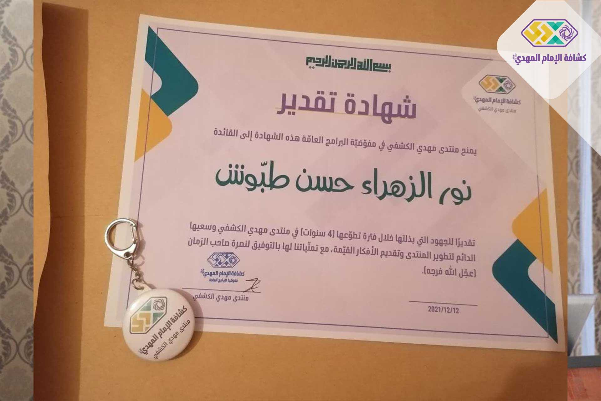 11 عامًا من العطاء اختُصِرت بلقاءٍ قدّمت خلاله أعمالٌ حيكت خيوطها من نور الشمس لتقدّم إلى رئيس جمعيّة كشافة الإمام المهدي (عجّل الله فرجه) وتسير تحت رايته نحو الأمل الموعود، بلقاءٍ تكريمي جمع المتطوعين في منتدى مهدي الكشفي بحضور رئيس الجمعية القائد نزيه فياض، مفوضة البرامج العامة، أعضاء مفوضيّة البرامج، ومديرة منتدى مهدي الكشفي والأعضاء المتطوعين.