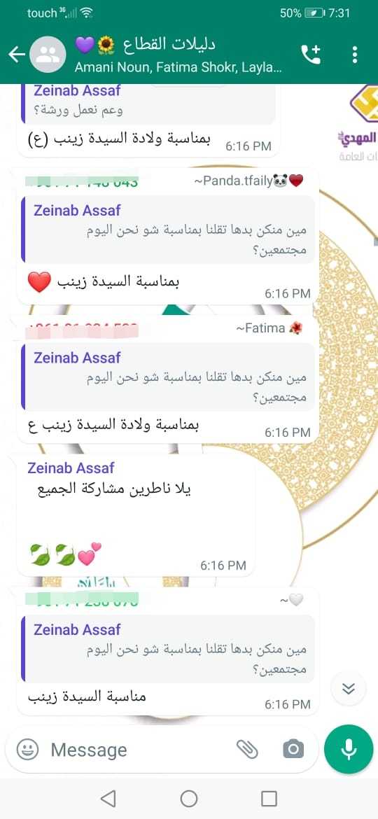 في اجواء الولادة المباركة للحوراء زينب عليها السلام وردة فاطمة وعلي عليهما السلام، ويوم الدليلة، نظم قطاع بعلبك في مفوضية البقاع ورشة بعنوان "حكاية صبر" بمشاركة 70 دليلة، كما واطلق القطاع مسابقة في الرسم، وأخرى ثقافية عن حياة السيدة زينب وافتتح منبر حر في الكتابة والإلقاء وختام الأنشطة كان بالقرعة وتوزيع الجوائز
