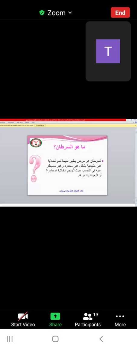 تحت شعار الوقاية من السرطان شاركت ٢٢ قائدة من قطاع بريتال بالتعاون مع أمانة تنمية المجتمعة في مفوضية البقاع بورشة إلكترونية مع الدكتورة تالا السيد التي قدمت عبر تطبيق الزوم فقرة تعريفية للأمراض السرطانية وطرق الوقاية منها.