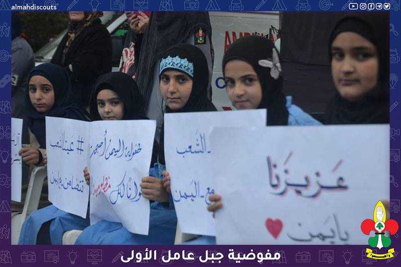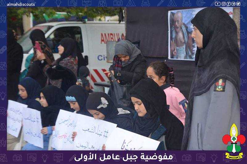 وقفة تضامنية لكشفيات فوج البتول (عليها السلام)/عيتا الشعب مع أطفال اليمن.