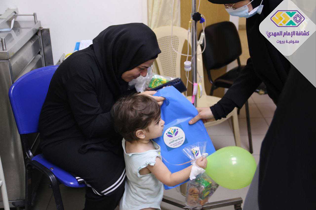 بمناسبة عيد الغدير قامت فرقة خدمة المجتمع في فوج السيدة نرجس (ع) - المصيطبة, بزيارة خاصة للمرضى الأطفال في مستشفى بهمن