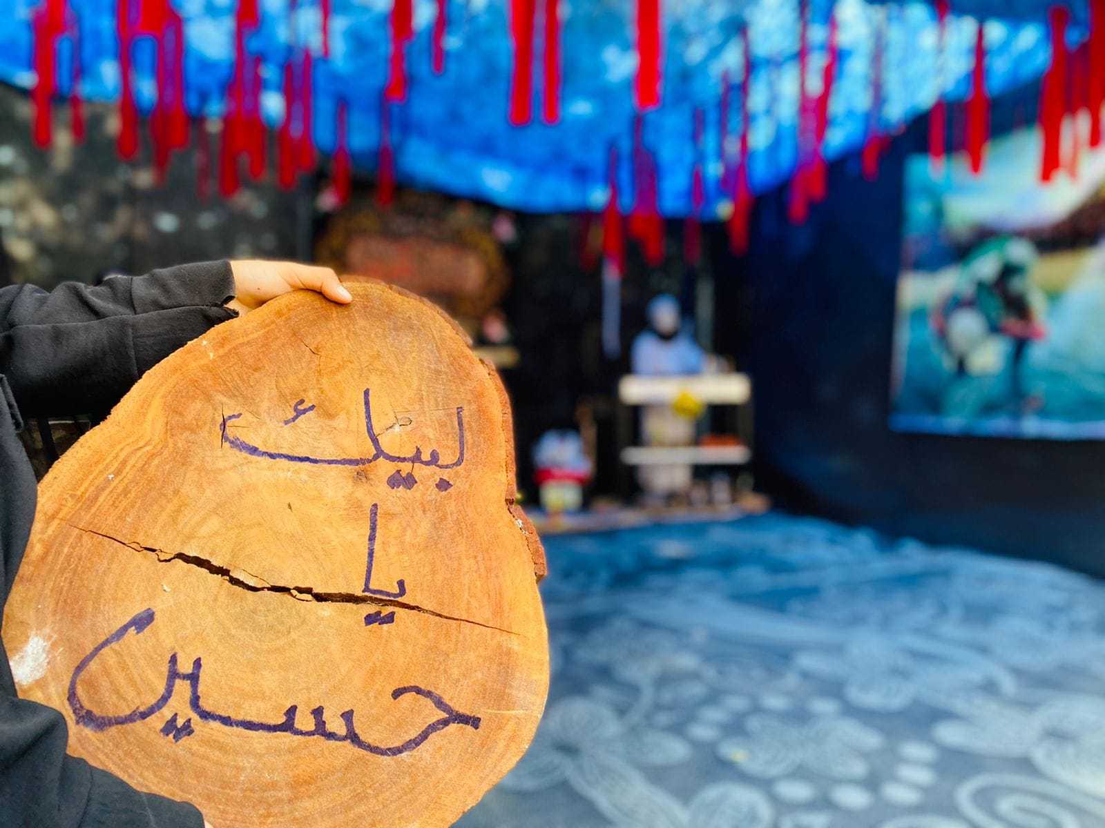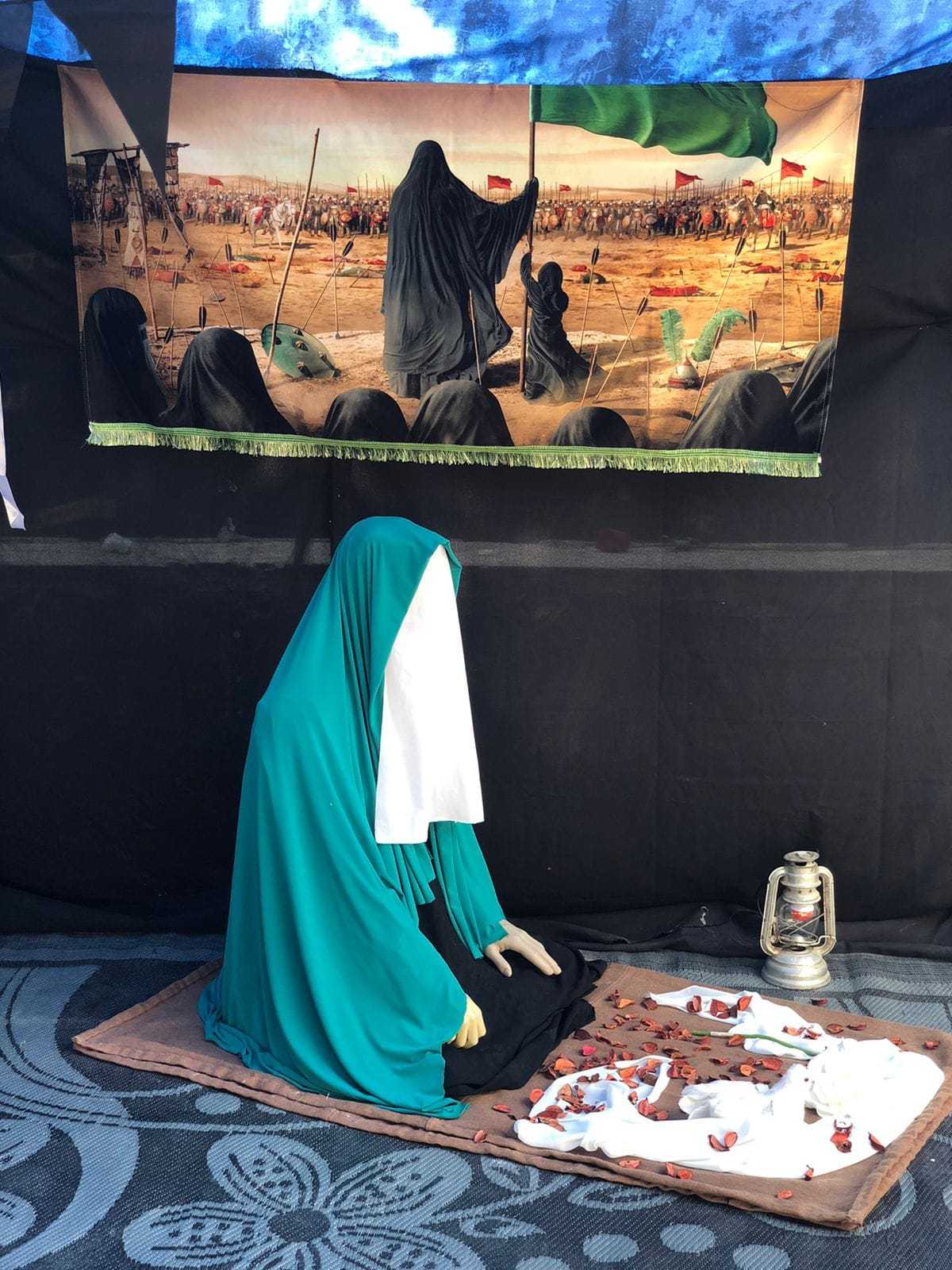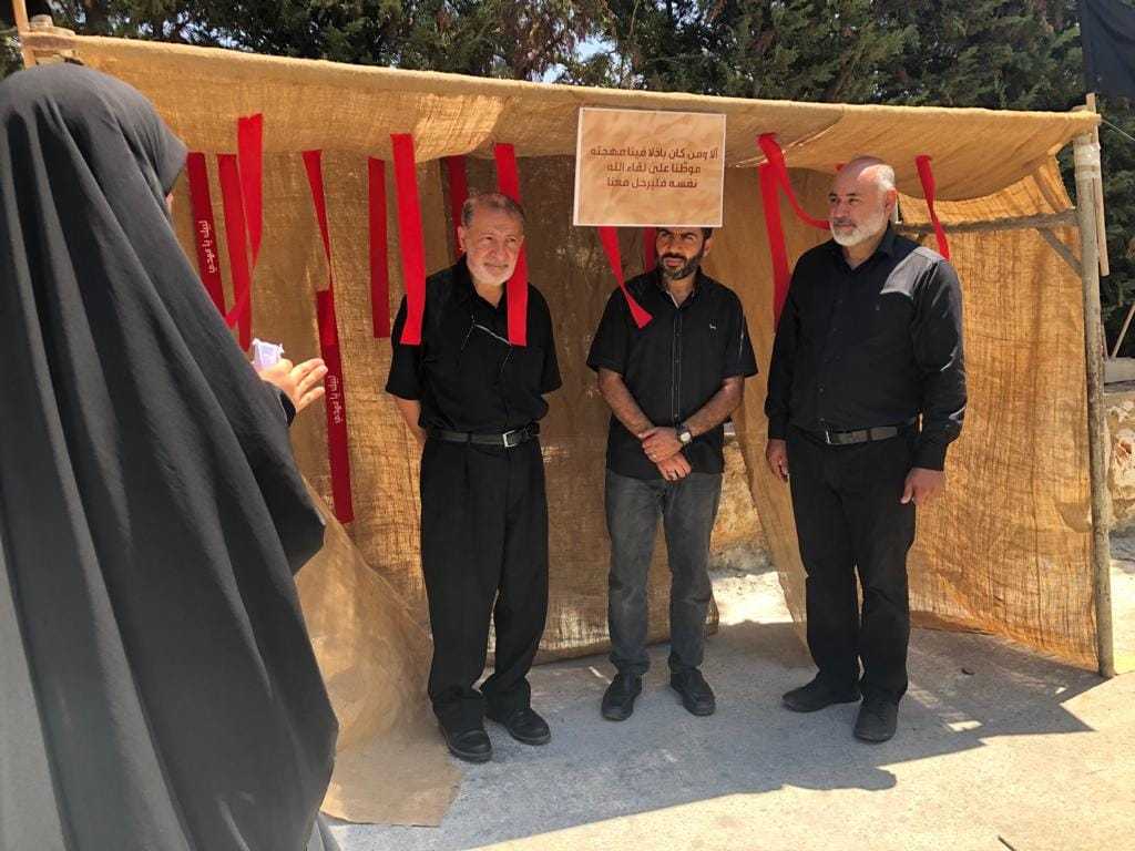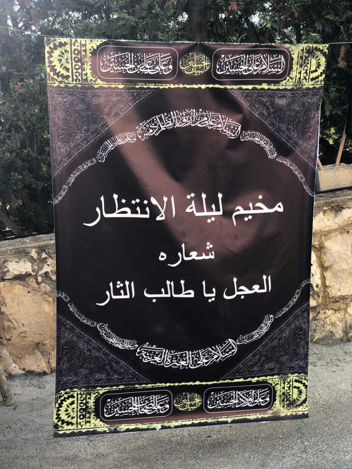 قربانً للصاحب قربانً للحسين والعباس وزينب قربانً للمضحين المخلصين في أرض الطف كربلاء، نظم وافتتح فوج الحوراء"ع"- قانا مخيم "ليلة الإنتظار"