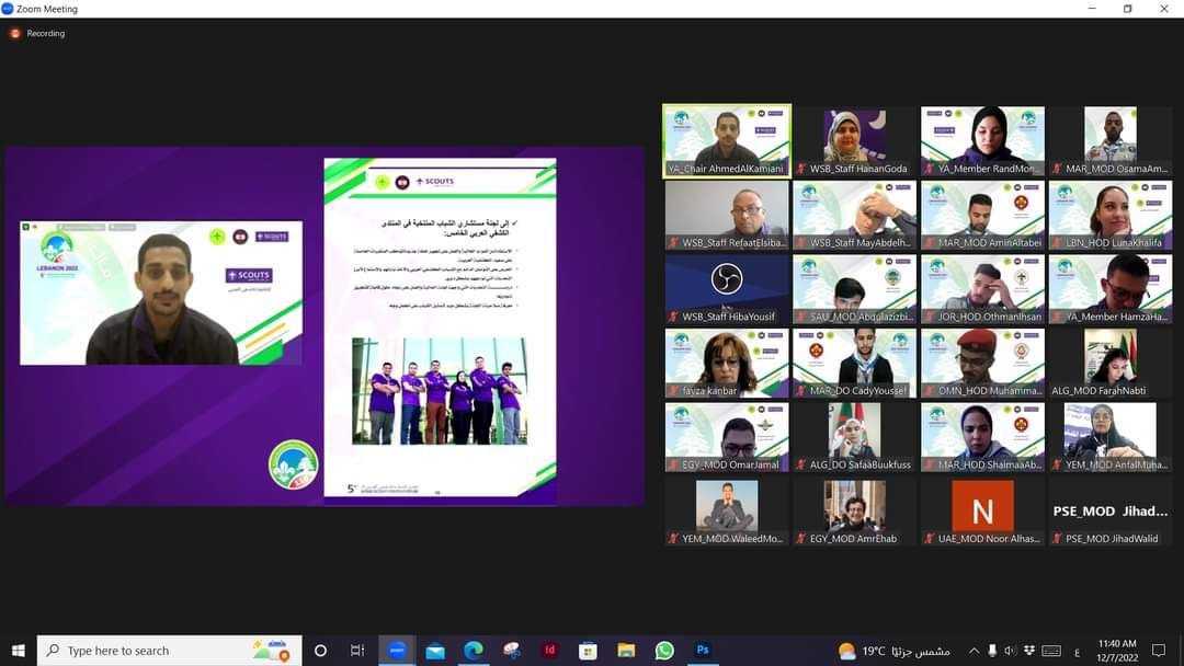 وفي إطار حرص اللجنة الكشفية العربية والإقليم الكشفي العربي على إشراك الشباب وتمكينهم من المشاركة فى صنع واتخاذ القرار، انتخبت الجمعيات الكشفية العربية المُشاركة ستة من الشباب لعضوية لجنة مستشاري الشباب الكشفي العربي، وذلك لمدة ثلاث سنوات بأسلوب ديمقراطي مستخدمين نظام التصويت الإلكتروني المعتمد للمنظمة الكشفية العالمية.