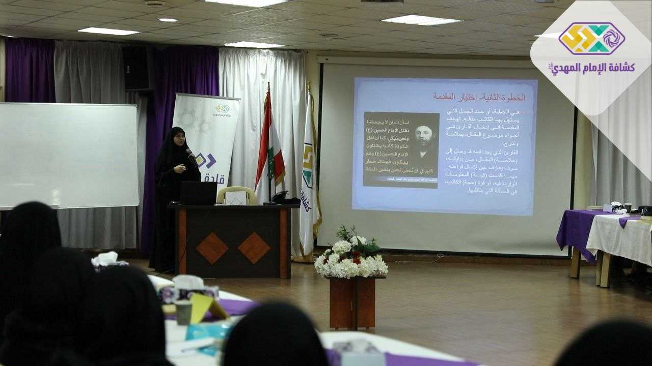 أما الجزء الثاني فكان حضورياً، وتضمنه لقاء مع مدير المركز الإستشاري للدراسات والتوثيق الدكتور عبد الحليم فضل اللّٰه حول "الاقتصاد في المشروع الحضاري الإسلامي المعاصر" تطرق من خلاله مفهومَي التنمية والتقدم كما تميز اللقاء بمشاركة ومداخلة عدد من القادة والقائدات. بعده أقيمت ورشة تعليمية بعنوان "إعداد مقالة" قدّمتها مديرة التحرير في مجلة بقية اللّٰه الأخت نهى عبد اللّٰه، وتطرقت من خلالها لـتعريف، هدف، وكيفية كتابة مقالة ناجحة من حيث اللغة والأسلوب والإبداع وذلك بمشاركة وتفاعل المتدربين والمتدربات.