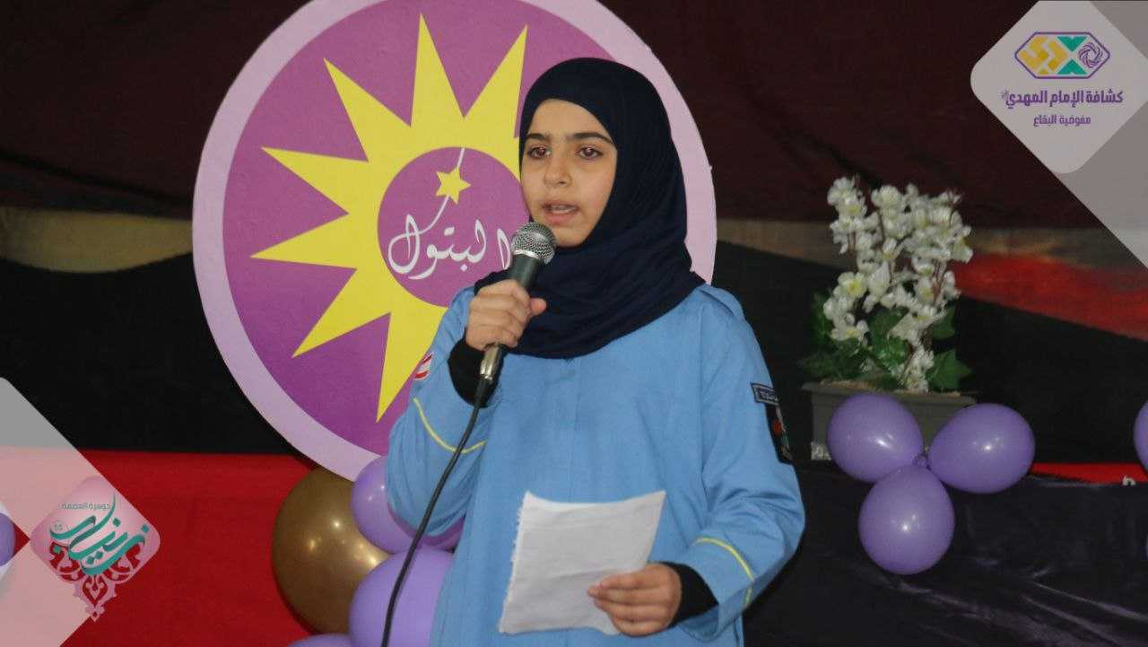 حضر الحفل فضيلة الشيخ ماهر امهز، قائد القطاع ومعاونه، مسؤولة الهيئات النسائية في القطاع، ثلة من القائدات وحشد من الأهالي، وافتتح بمراسم تعظيم للقرآن الكريم، نشيد نجمات البتول، كلمة النجمات، سكتش صغير، كلمة راعي الحفل والختام وقبل نشيد إمام زماني وزعت الهدايا وافادات المشاركة والشارات على المكرمات.