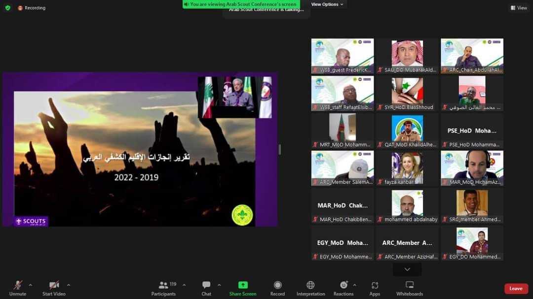 من جهته قدّم مدير الإقليم الكشفي العربي تقريراً عن إنجازات الإقليم في الفترة من 2019 على 2022، تناول فيها بعض المحاور ومن أهمها محور الطرق التربوية، وتنمية القيادات، والتنوع والاندماج، والتنمية المؤسسية، ومحور الشراكات، والتحول الرقمي، ليتم فتح باب النقاش بين المؤتمرين والمدير الإقليمي.
