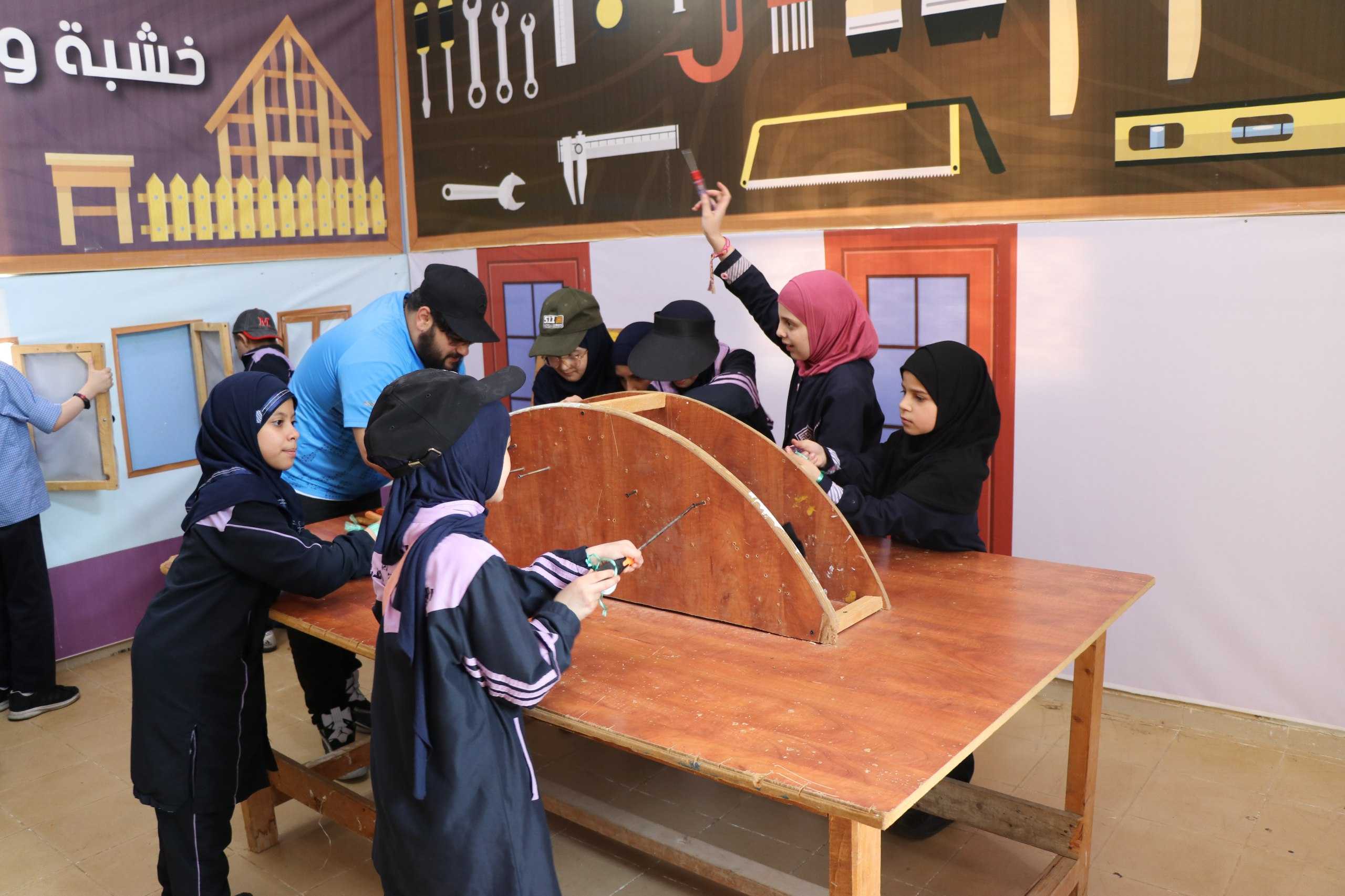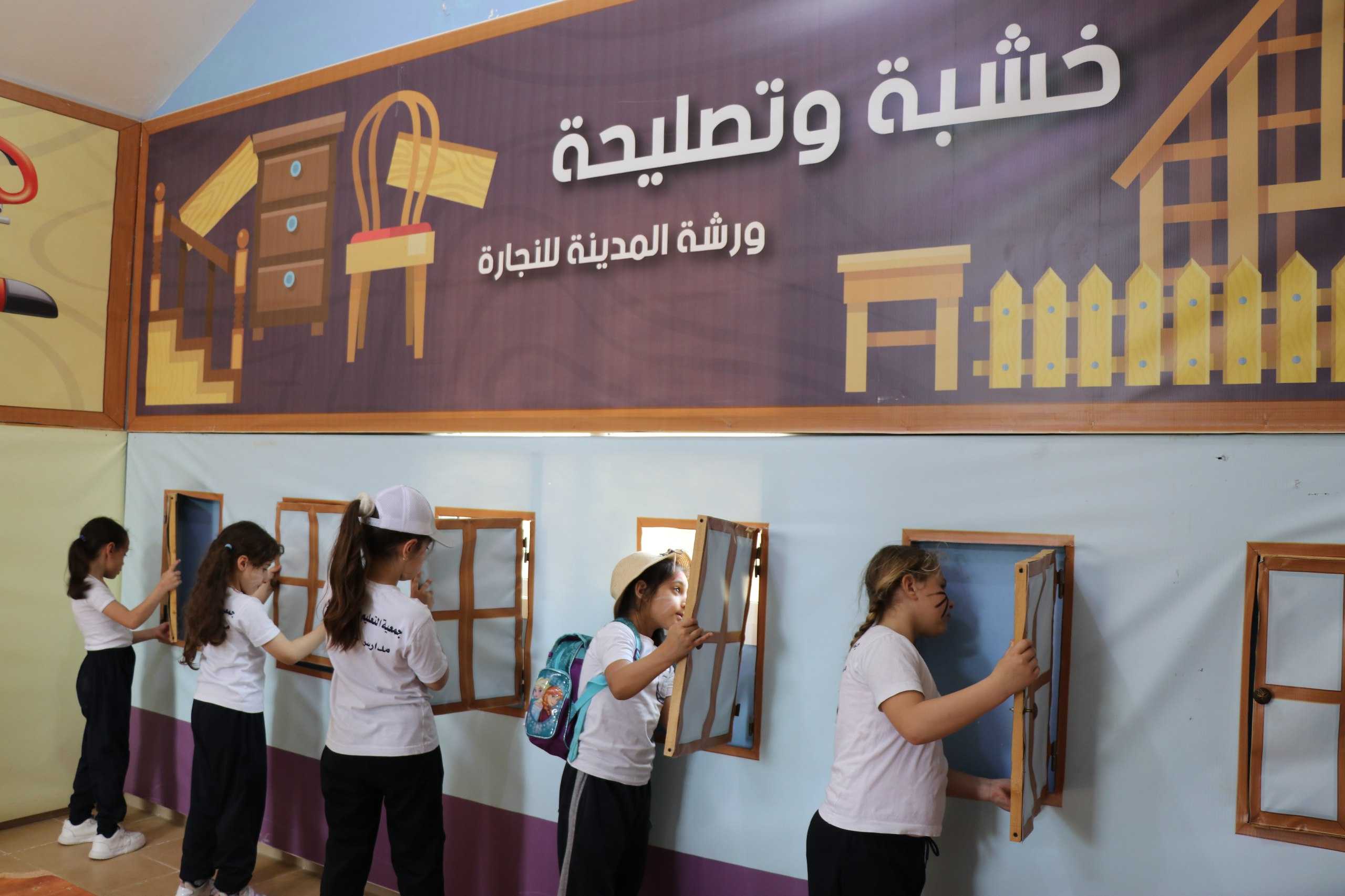 نكمل جولتنا وحوارنا مع مدير مدينة الإمام الخميني في زوطر السيد محمد فحص ونحن نشاهد مستوى التفاعل والفرح الذي يعيشه المشاركون في برامج المدينة وفاعلياتها، فسألناه عن الفائدة التي يحصلها الأطفال والناشئة من خلال مشاركتهم في فاعليات وبرامج مدينة الحرف فيقول :" يمكن للمشاركين من الفتية والفتيات أطفالاً وناشئة وبعد أن يتم تقسيمهم إلى مجموعات أن يتعرفوا على عدد من الحرف والمهارات الحياتية المختلفة مثل النجار والمزارع والفرّان ورجل الإطفاء وغيرها الكثير، ولا يكتفي بالتعرف عليها بل يعايشها ويحاكيها ويطبقها بنفسه ليقارب المعرفة بالعمل والتنفيذ"، فنرى الواحد منهم يمسك بخرطوم الإطفاء ويشارك في إطفاء الحريق الصغير المصطنع مع الإطفائي، ونراهم في قسم الفرن يقومون بإعداد العجين ويرقون منقوشتهم ويخبزونها بمواكبة عمو الفران وطبعاً هذه المنقوشة ستكون من نصيب صانعها، ووصولا إلى البنّاء والدّهان والنجّار وغيرهم، وهكذا يتناوب كل واحد منهم على كل الأدوار، فتتفتح أذهانهم ومدركاتهم العقلية على كثير من المهن والحرف المفيدة والمهمة في حياتنا".