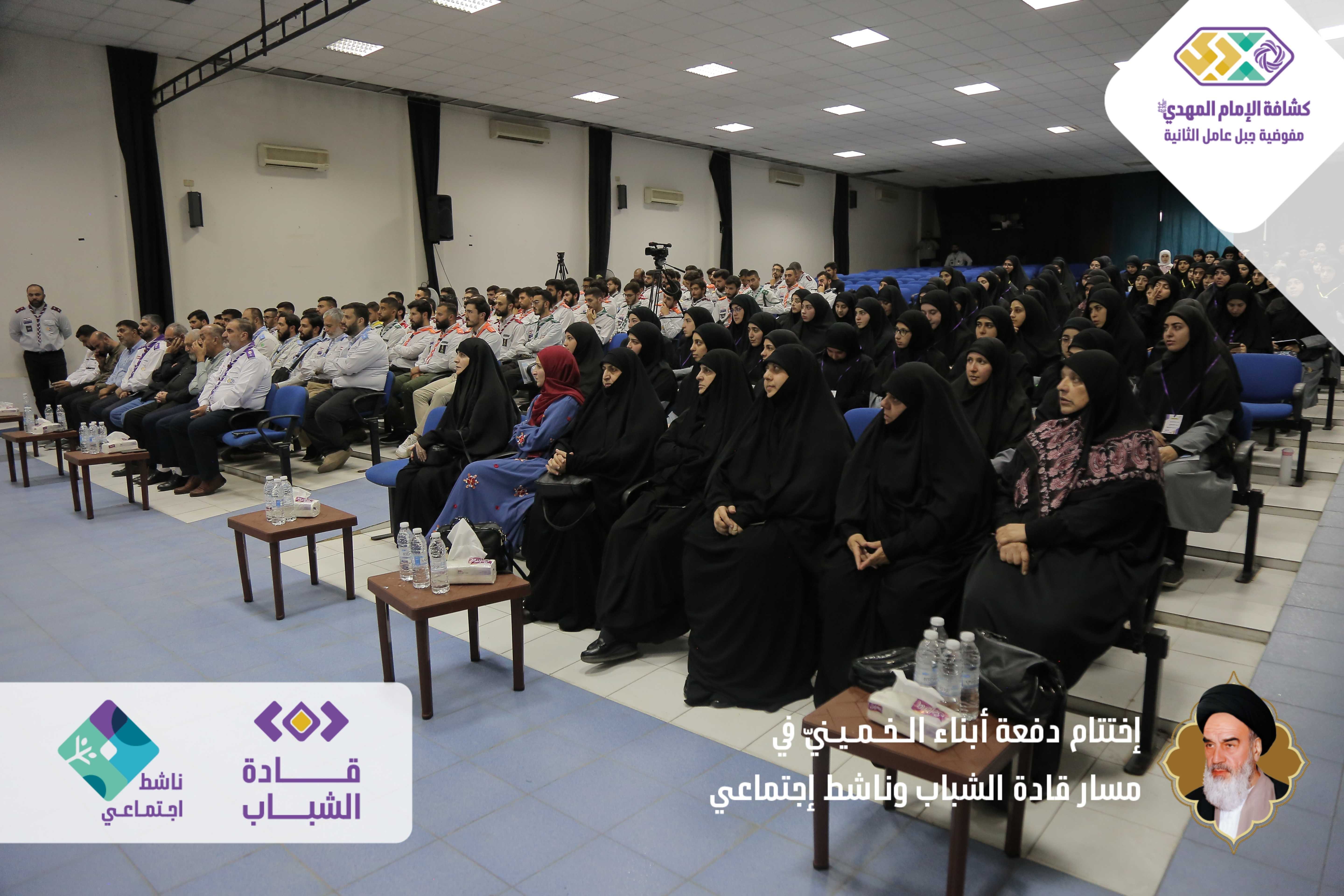 دفعةٌ خمينيةٌ خامنئيةٌ ولائية شبابيةٌ حاضرةٌ وواعدة، بدأت أولى خطوات مسارها اليوم بعدما اختتمت مفوضية جبل عامل الثانية الدفعة الأولى من مساري قادة الشباب وناشط اجتماعيّ في حفلٍ أقيم برعاية مسؤول منطقة جبل عامل الثانية الحـاج عـلـي ضـعـون. شهدَ الحفل الذي أقيم في قاعة تجار مدينة النبطية حضورًا فاعلًا للشخصيات ومدرّبي دورات المسارين، وتخلله عرض تقرير إعلامي مصور عن المسارين، وكلمة باسم المتدربين كانت عبارة عن فقرة فنّية مميّزة بعنوان - حكاية مخيم أبناءُ الـخـمـيـنيّ. وفي كلمتهِ باركَ الحاج علي ضعون الخطوة المميزة للمسارات والتي اعتبرها أمل كبير في الساحات المتعددة، والتي ترسمُ المستقبل القادم والزاهر والناجح. وفي ختام الحفل وزّع مسؤول منطقة جبل عامل الثانية ومفوض جبل عامل الثانية الدروع التقديرية على المدربين والمدربات، وباركوا الصور التّذكارية التي التقطت مع قادة الشباب والناشطين الاجتماعيين.
