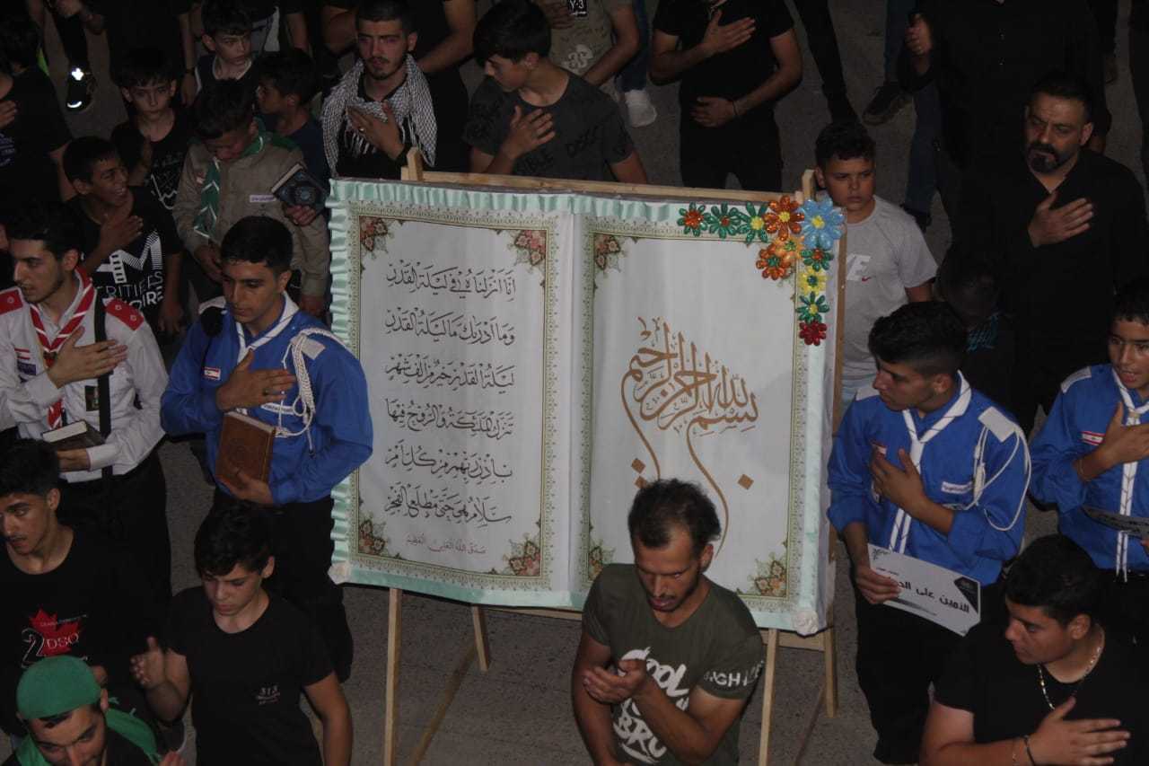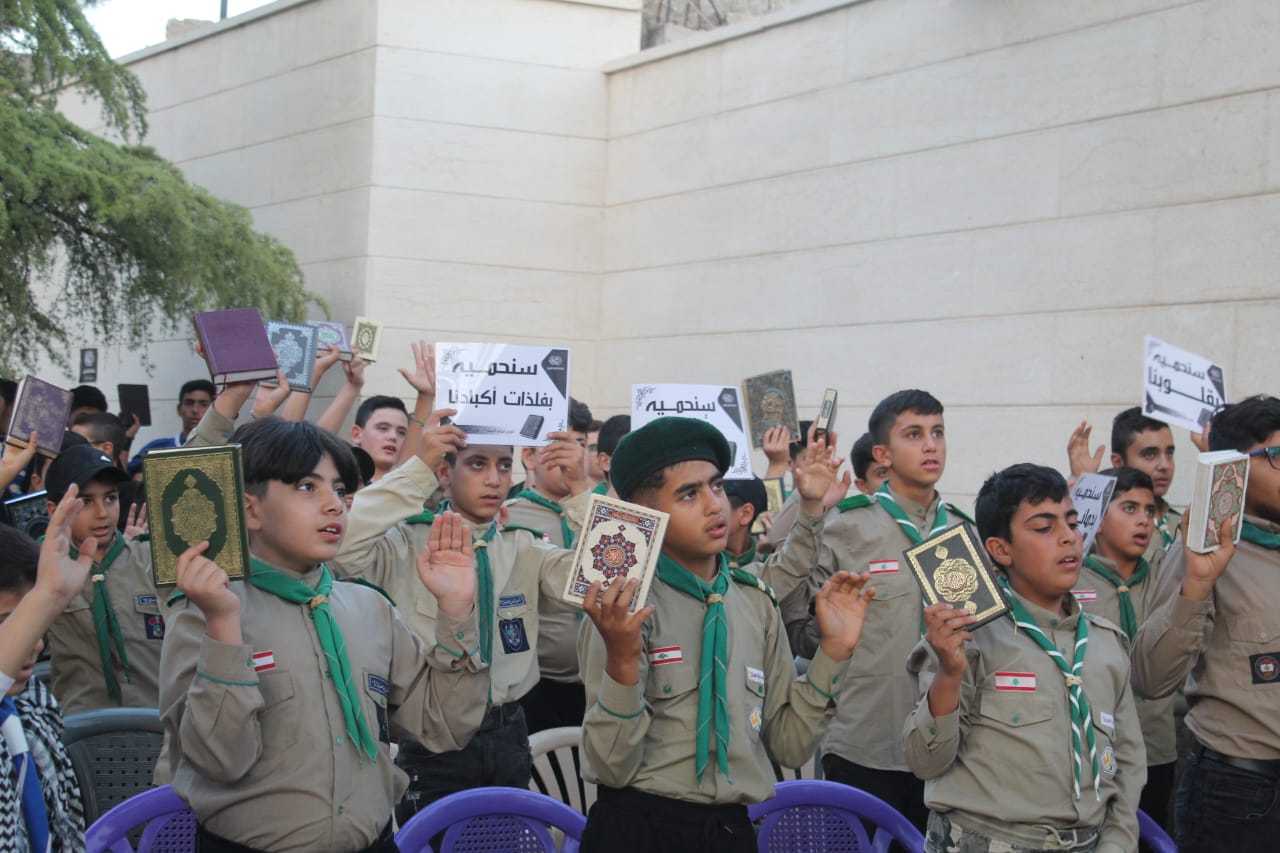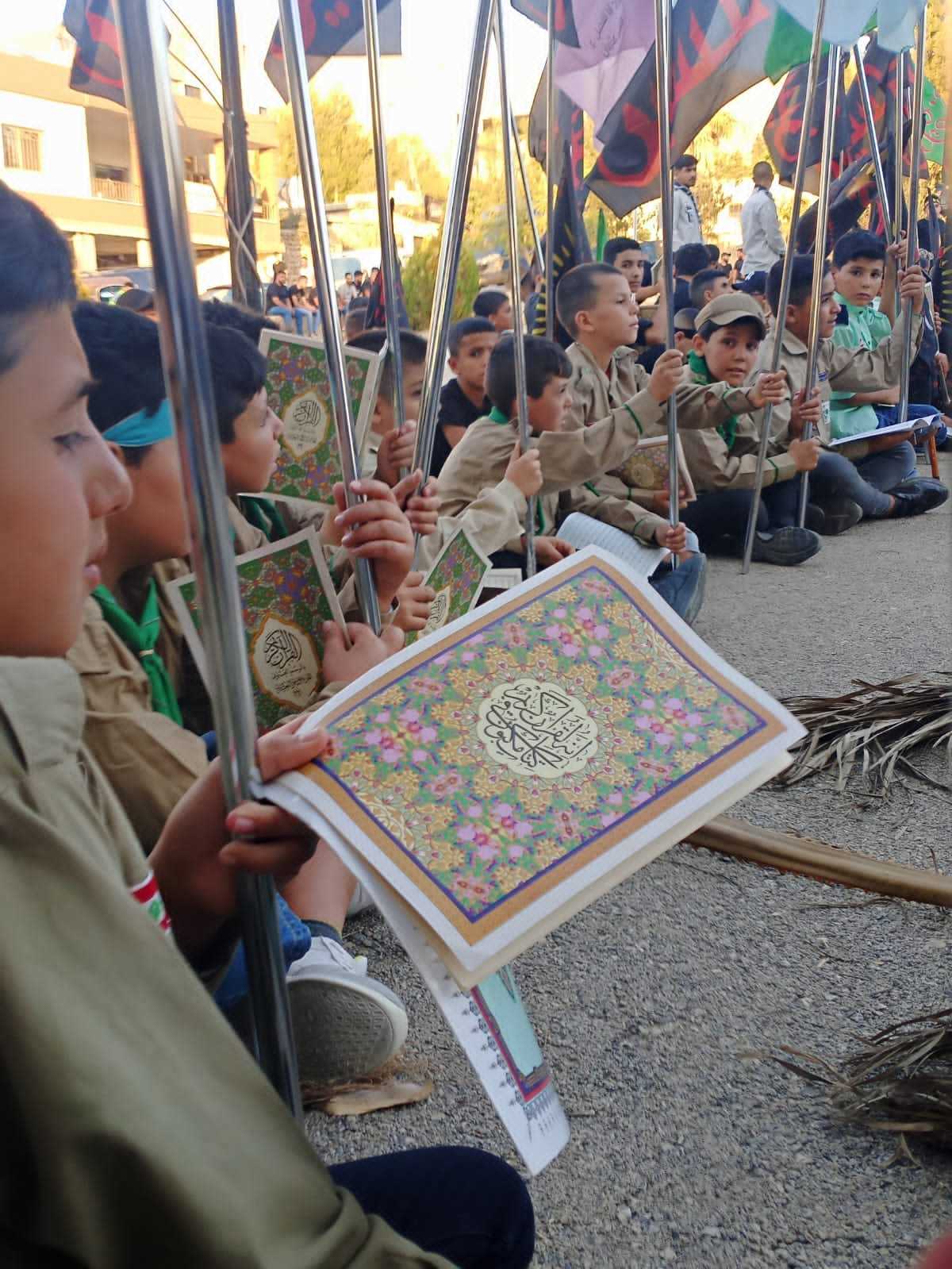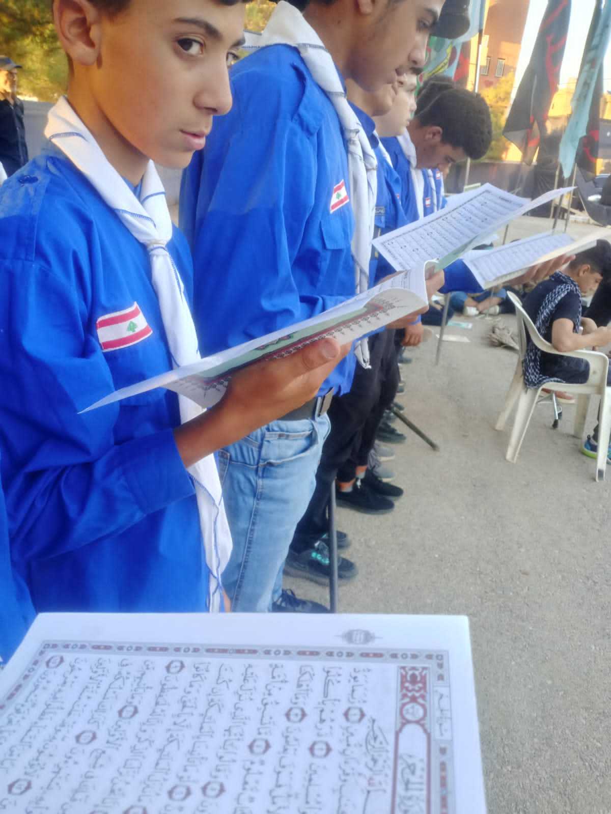 لك يا قران تلبيتنا ، بمحمد واله ومن والته تسميتنا ، باهدابنا وقلوبنا نحمله و ارواحنا من ستفديه ، بعض من احياء نصرة القران الكريم في افوج مفوضية البقاع