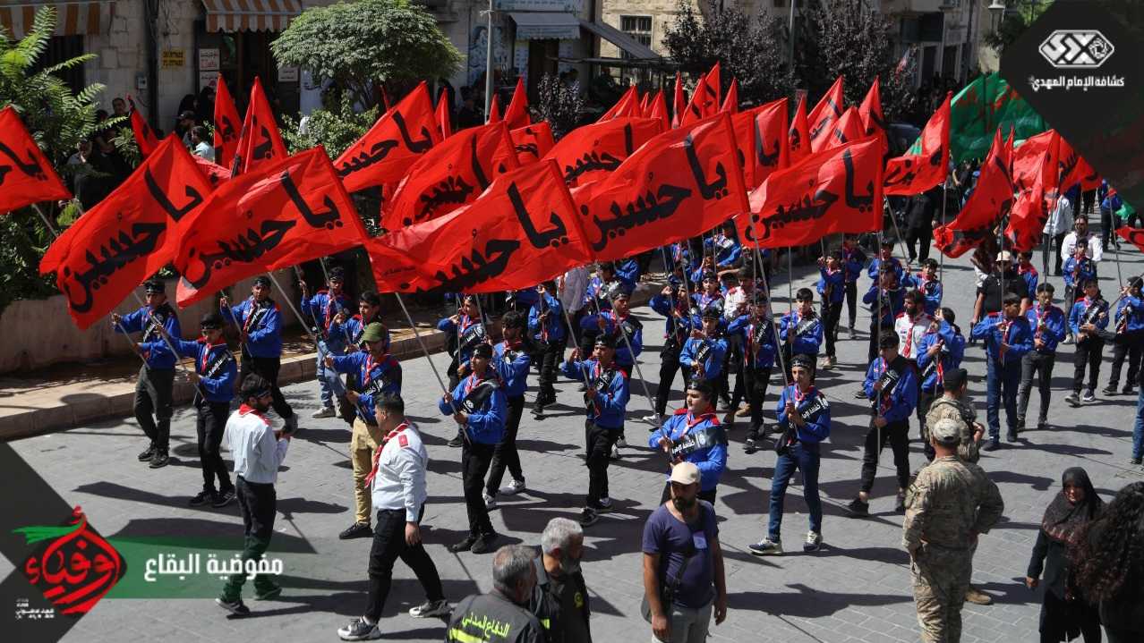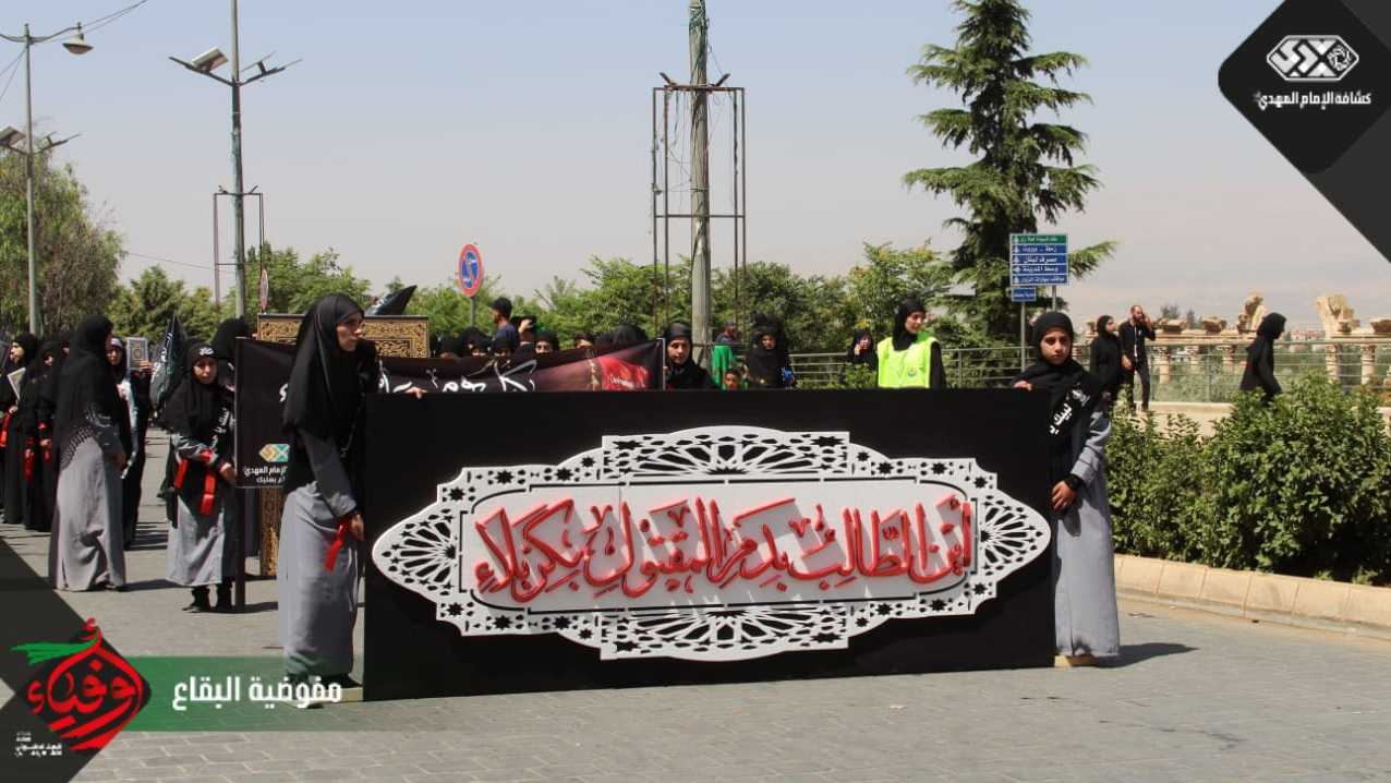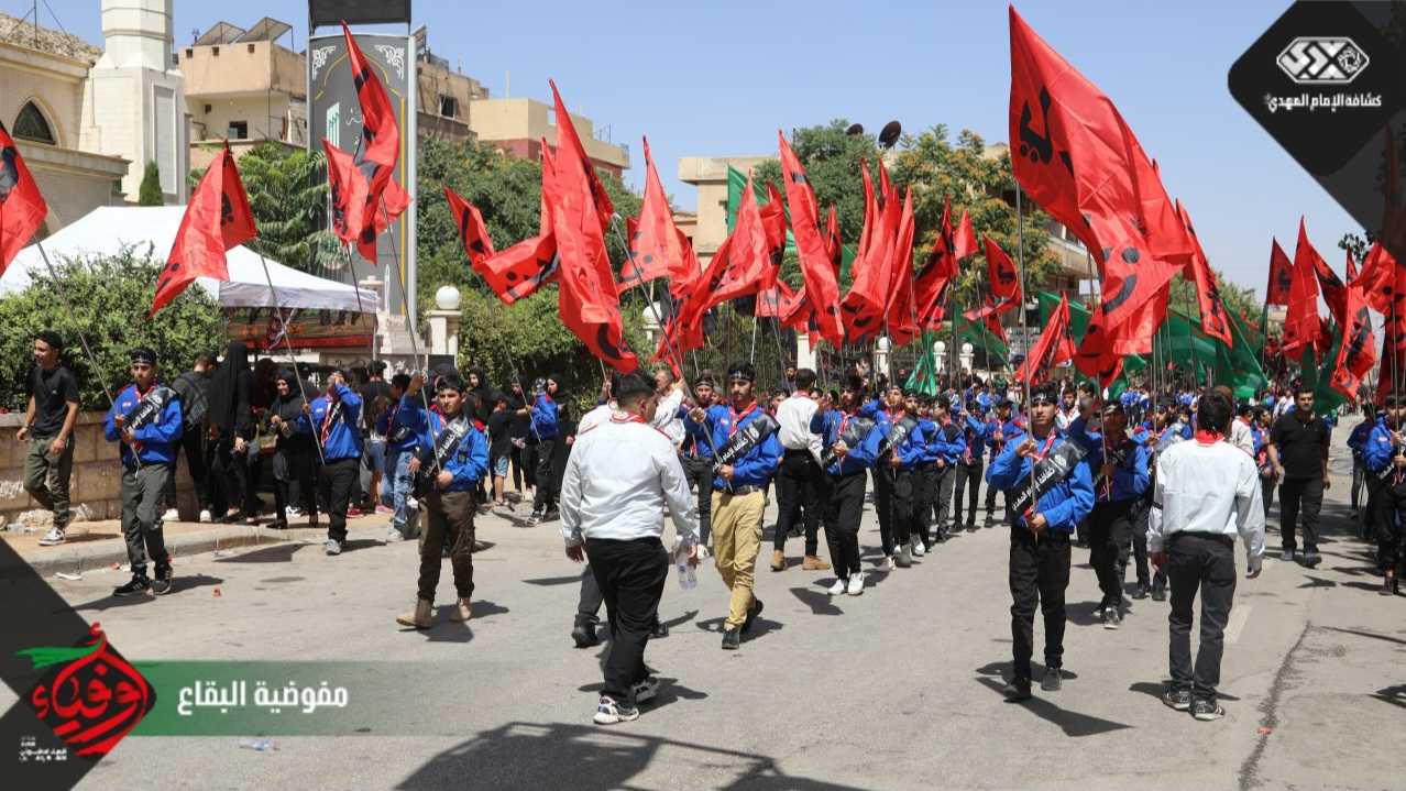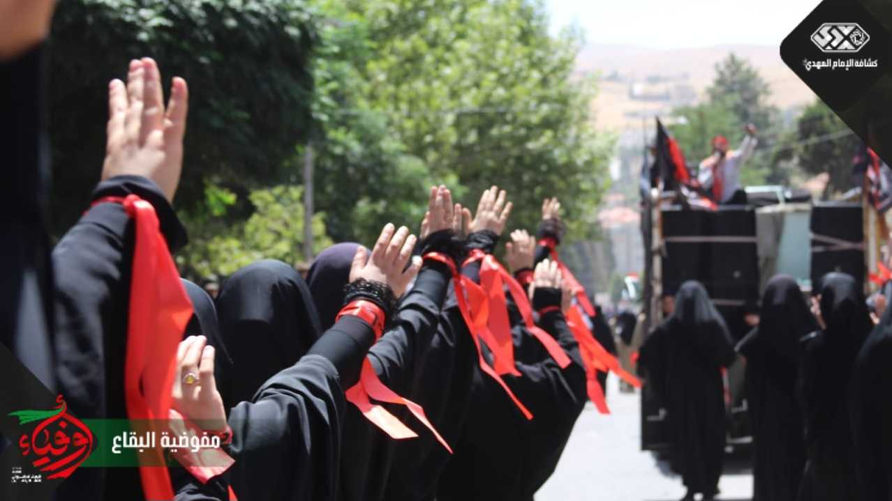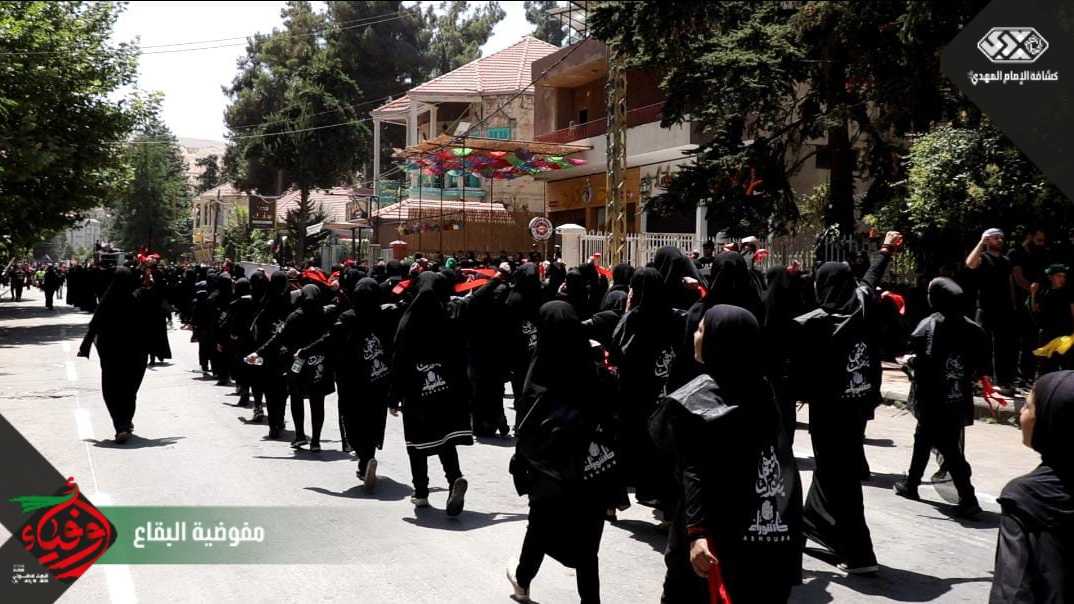 وفي بعلبك ومن مقام ابنة الحسين عليها السلام انطلقت مسيرة العاشر والتي جمعت حسينيو وزينبيات قطاعي بعلبك وبريتال، حيث رفعت الرايات والهتافات بلبيك يا حسين