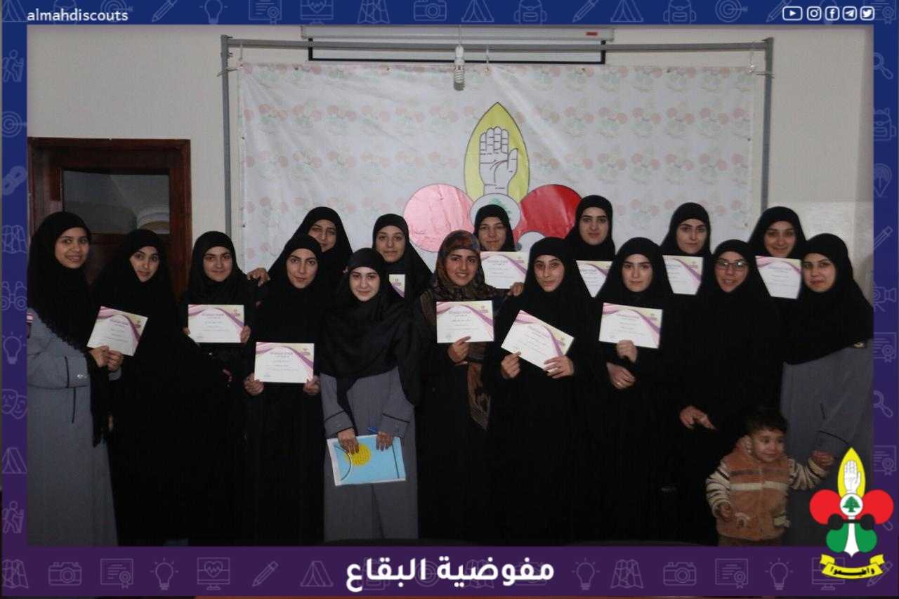 بعد سبعة أيام من الجد والنشاط، اختتمت مفوضية البقاع دورة "السيدة مريم بنت عمران عليها السلام" مستوى أول بدرجة قائدة، وبحضور مفوض البقاع، أمينة التدريب، قائد القطاع الشرقي، أمينة المرشدات في القطاع، قيادة الدورة والقائدات الخريجات، كان حفل الإختتام حيث اكد مفوض البقاع في كلمته، على المسؤولية التي حملتها القائدات الخريجات في خطوتهن الأولى هذه، واللواتي بدورهن شكرن الجمعية وأكدن على أنهن سيكملن سلّمهن التدريبي ليكن بخدمة أجيال التمهيد وذلك ضمن كلمة بإسمهن، ليختتم الحفل بتوزيع إفادات المشاركة ونشيد الوداع...